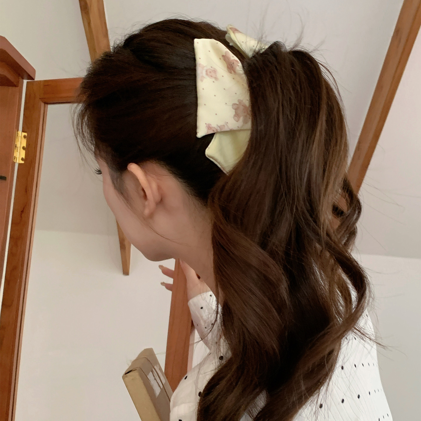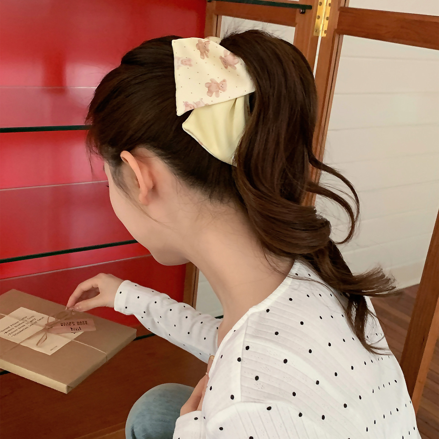 奶油草莓~韩系缎面小熊波点抓夹三角形发抓鲨鱼夹饱满后脑勺发饰