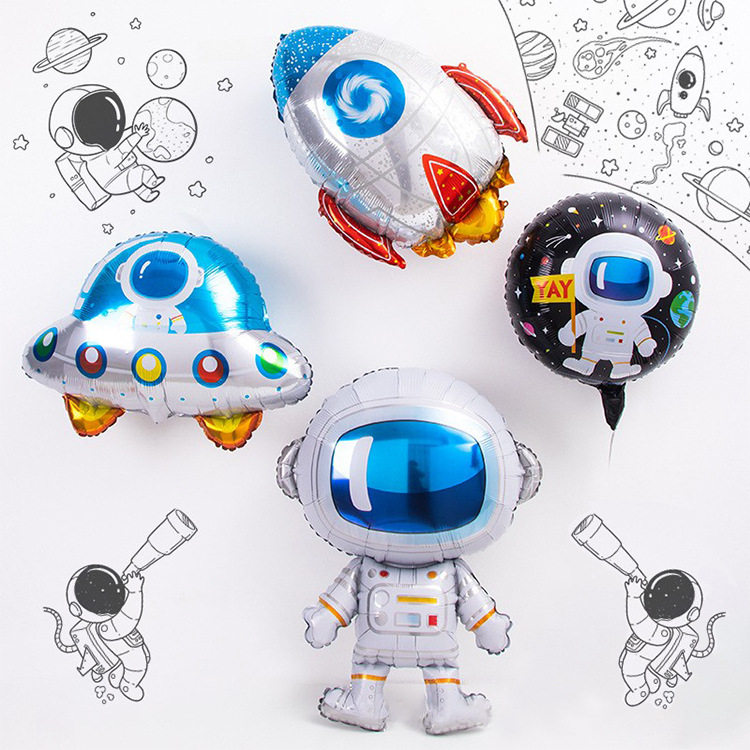卡通铝膜火箭太空气球男孩生日派对布置宝宝周岁儿童飞机场景装饰