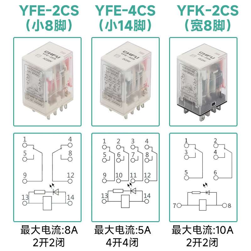 中间继电器24V直流220V交流12vHH52P小型电磁继电器8脚14脚带底座