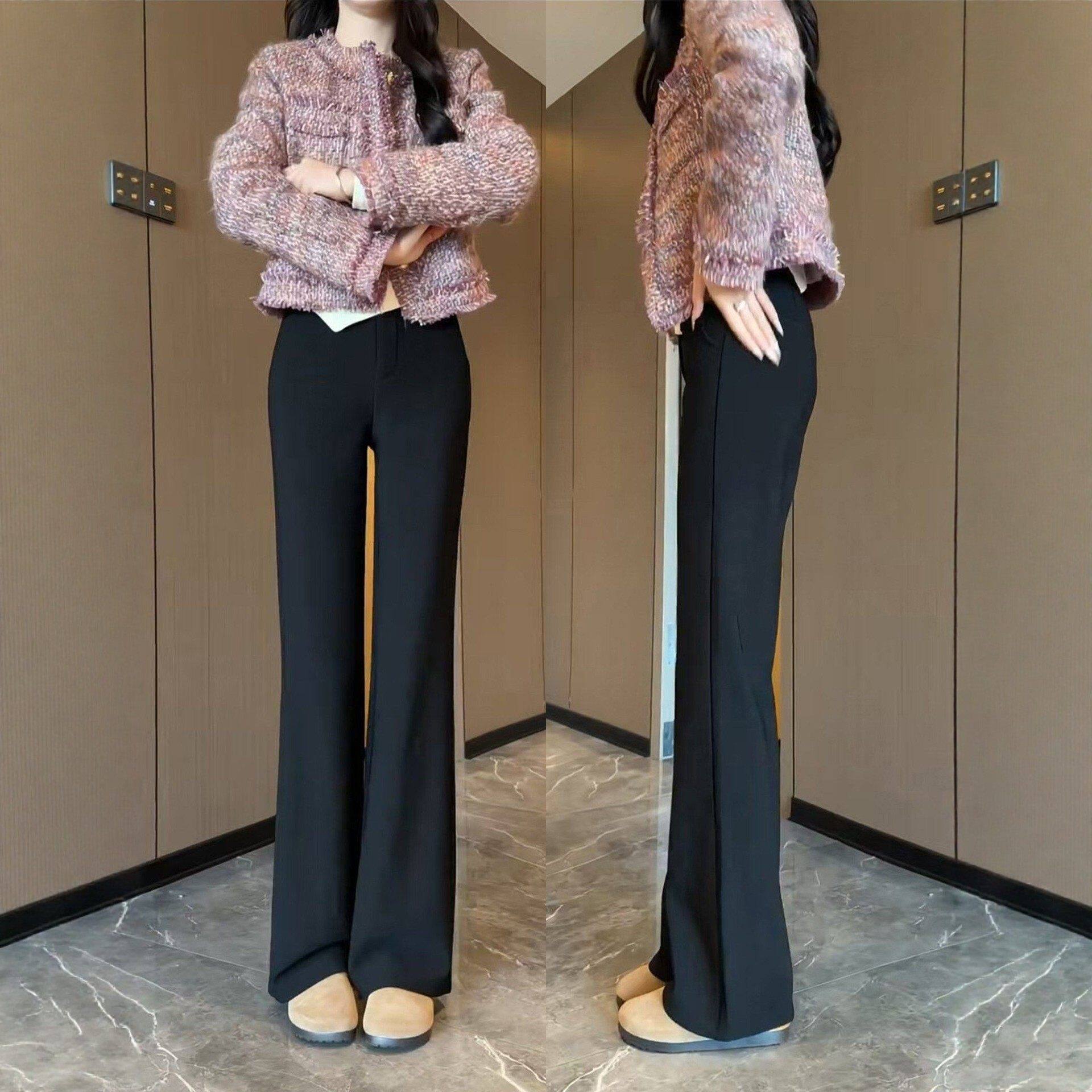 黑色阔腿休闲裤女春季2026新款小个子垂感不贴腿高腰直筒微喇叭裤