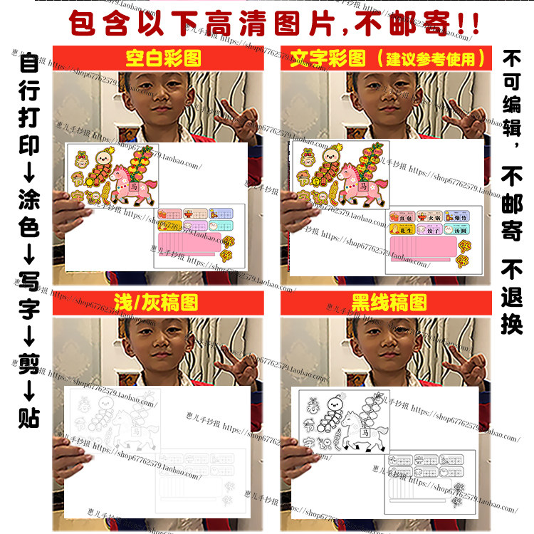 2026马年春节识字立体画剪贴画手抄报翻翻书新年生字开花电子小报
