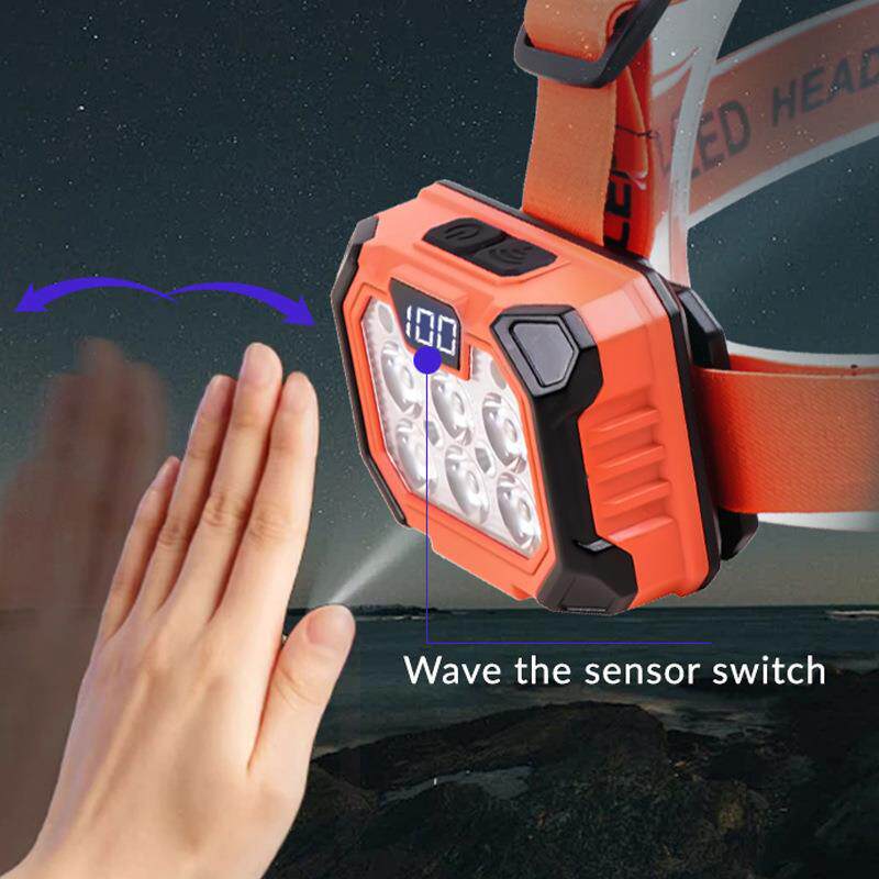 跨境新款带感应多功能COB便携式可充电头灯LED多光源头戴式夜钓灯