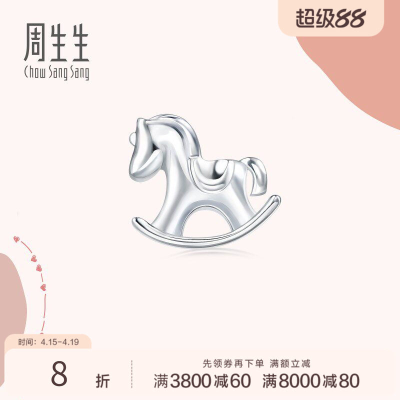 PROMESSA周生生爱情密语Pt950铂金耳饰小木马单只白金耳钉89821E