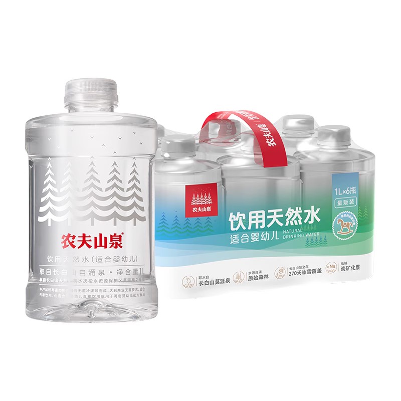 农夫山泉婴儿水天然水母婴水适合宝宝婴幼儿饮用水1L*12瓶整箱