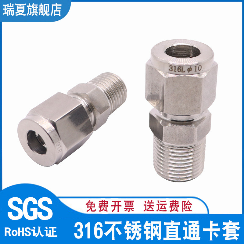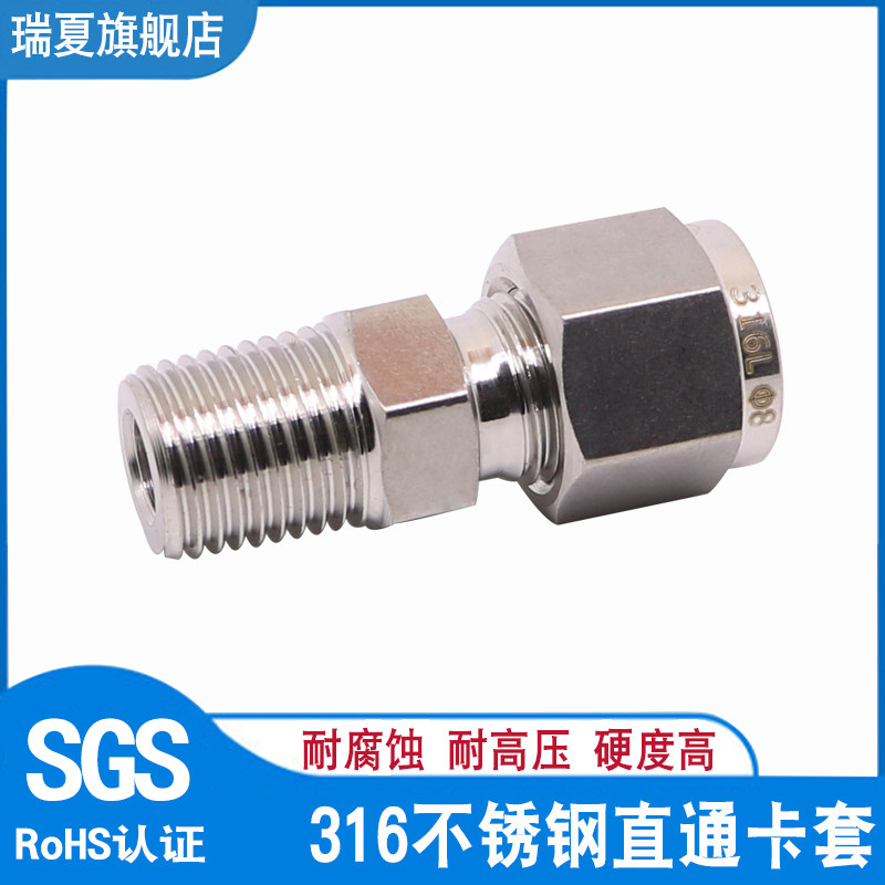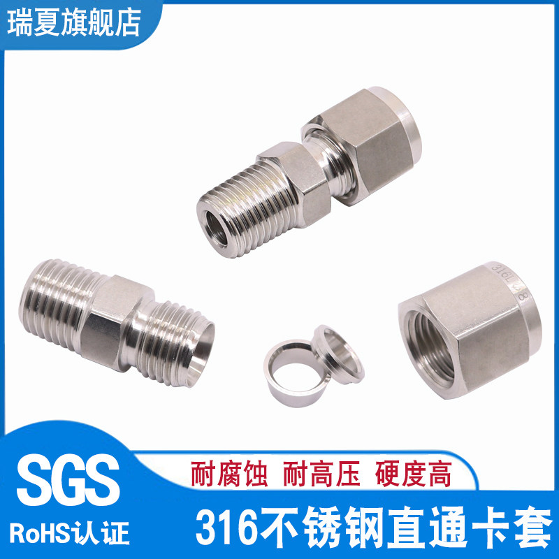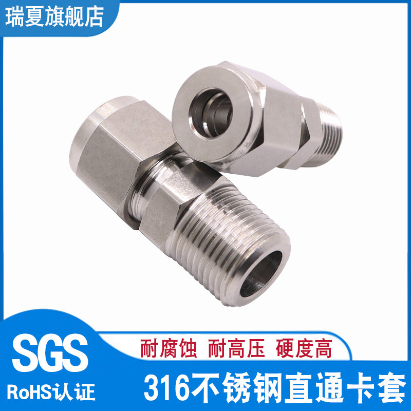 316不锈钢卡套直通接头高压外螺纹双卡套终端气源仪表金属管接头
