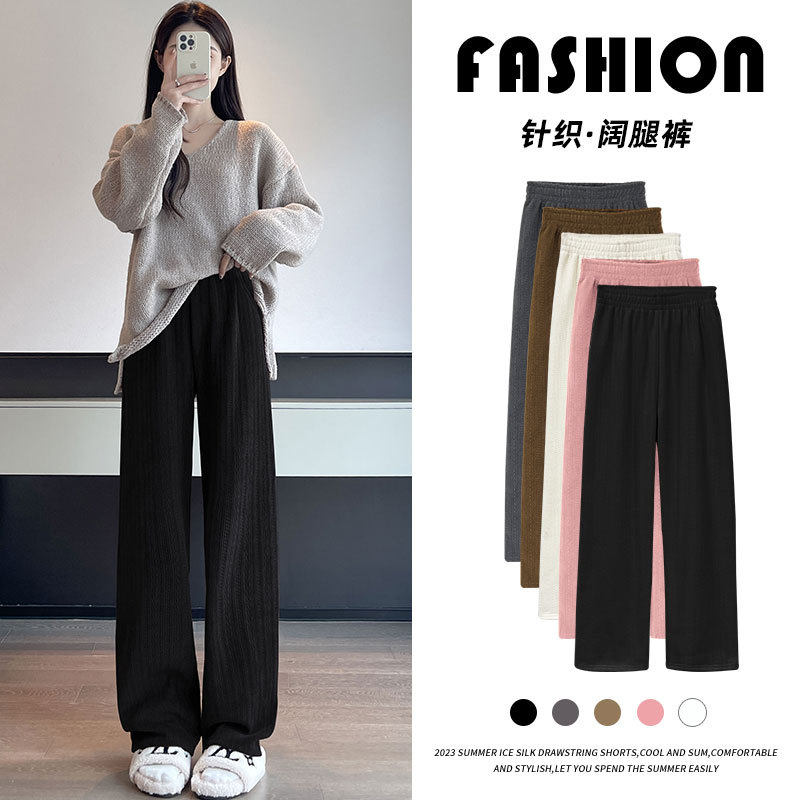 胖mm白色雪尼尔阔腿裤女秋新款高腰垂感休闲小个子直筒加绒裤子