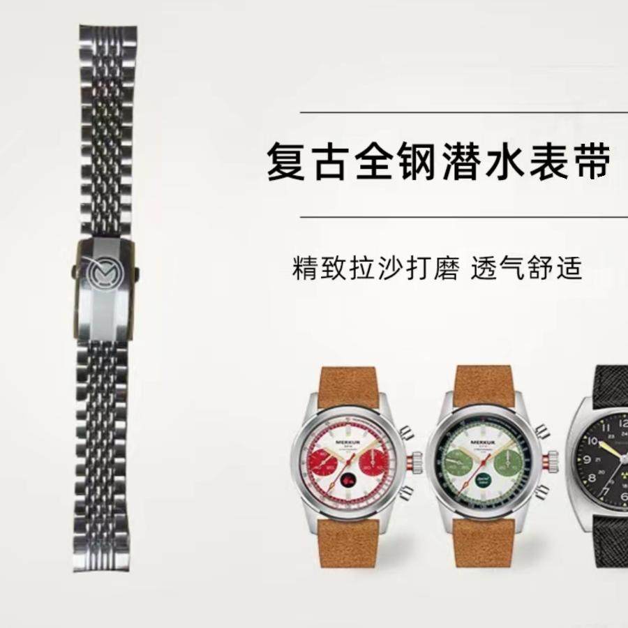 【适配凡致】复古W10手动机械表全钢潜水手表配件适配潜水表带