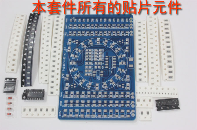 贴片旋转流水灯套件 贴片元件焊接练习板技能训练电子制作ZY-15-1