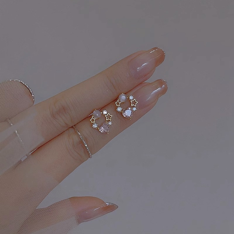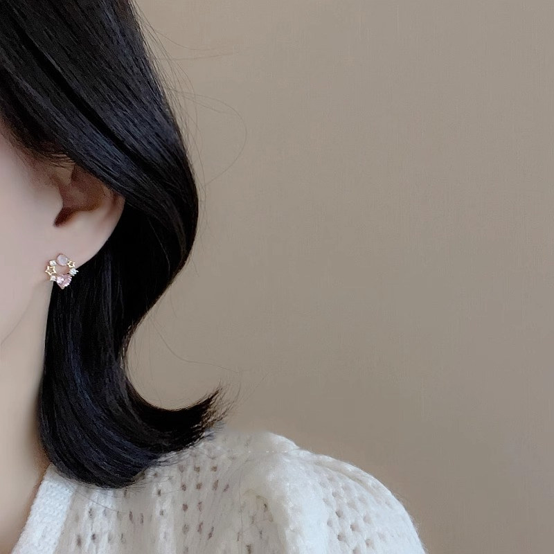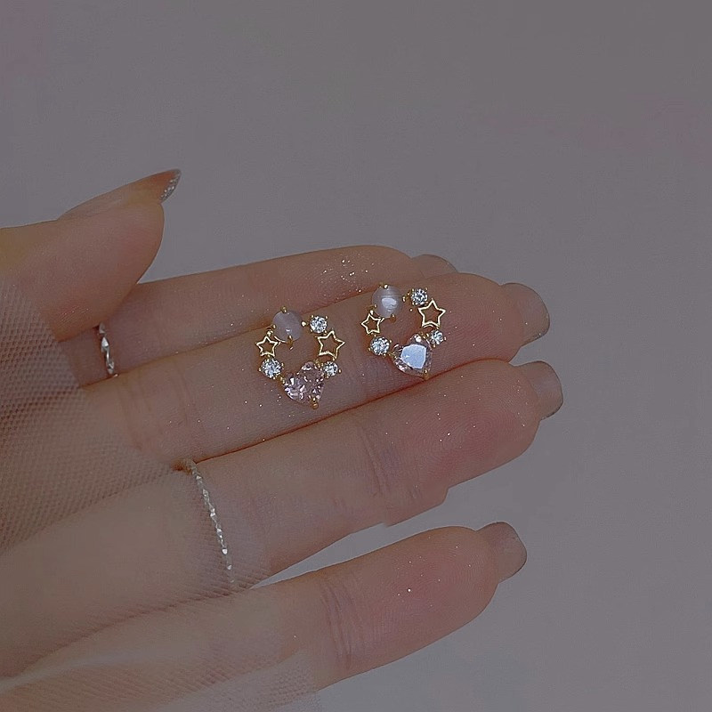 925纯银猫眼石耳钉2023年新款潮小众设计感耳环高级感爱心耳饰女