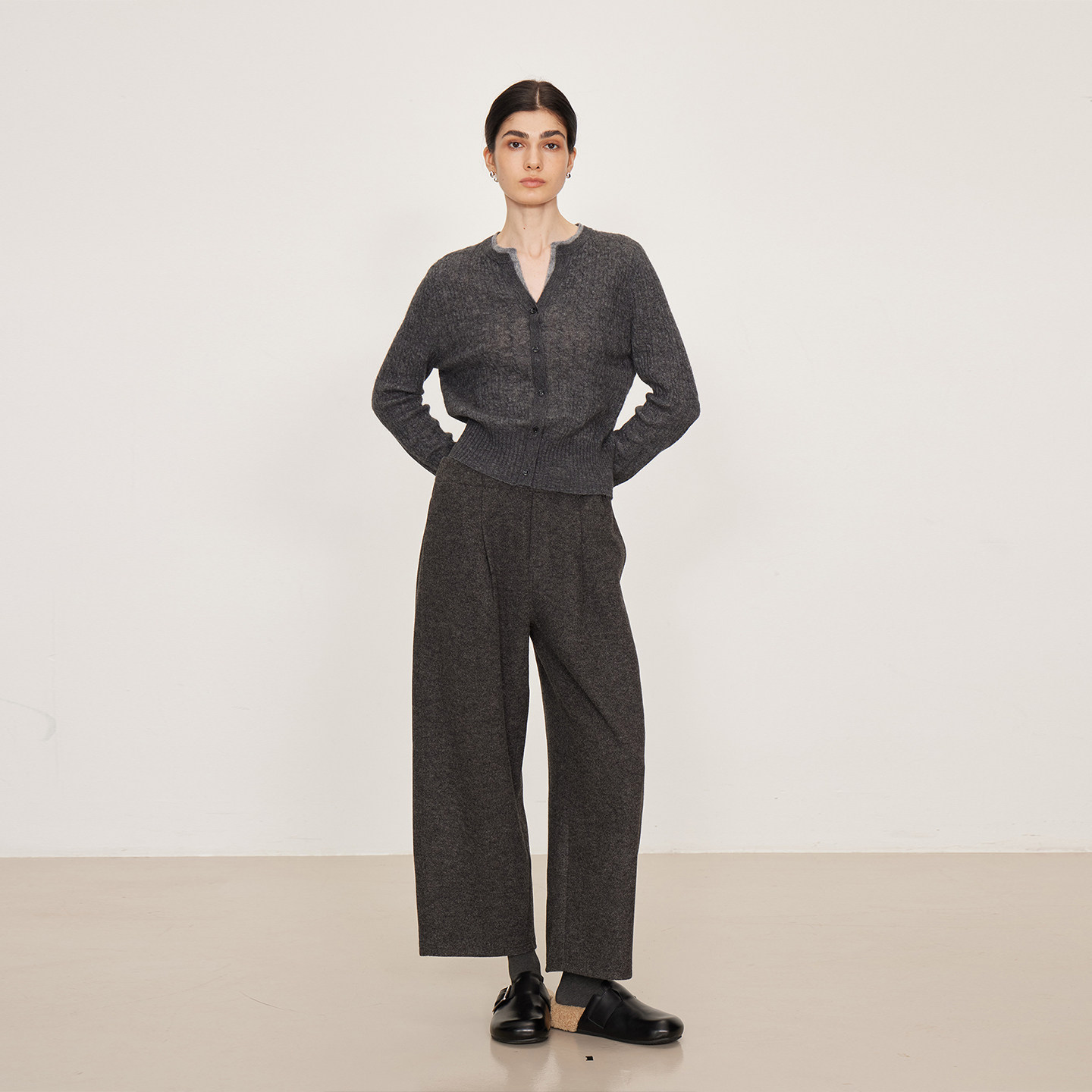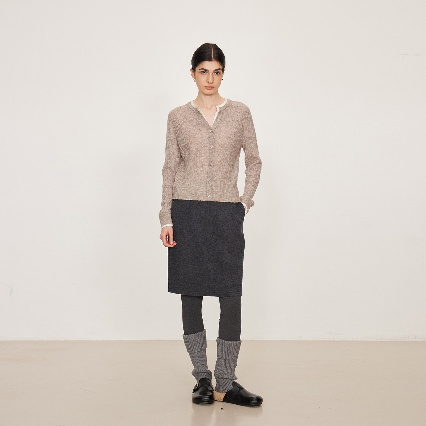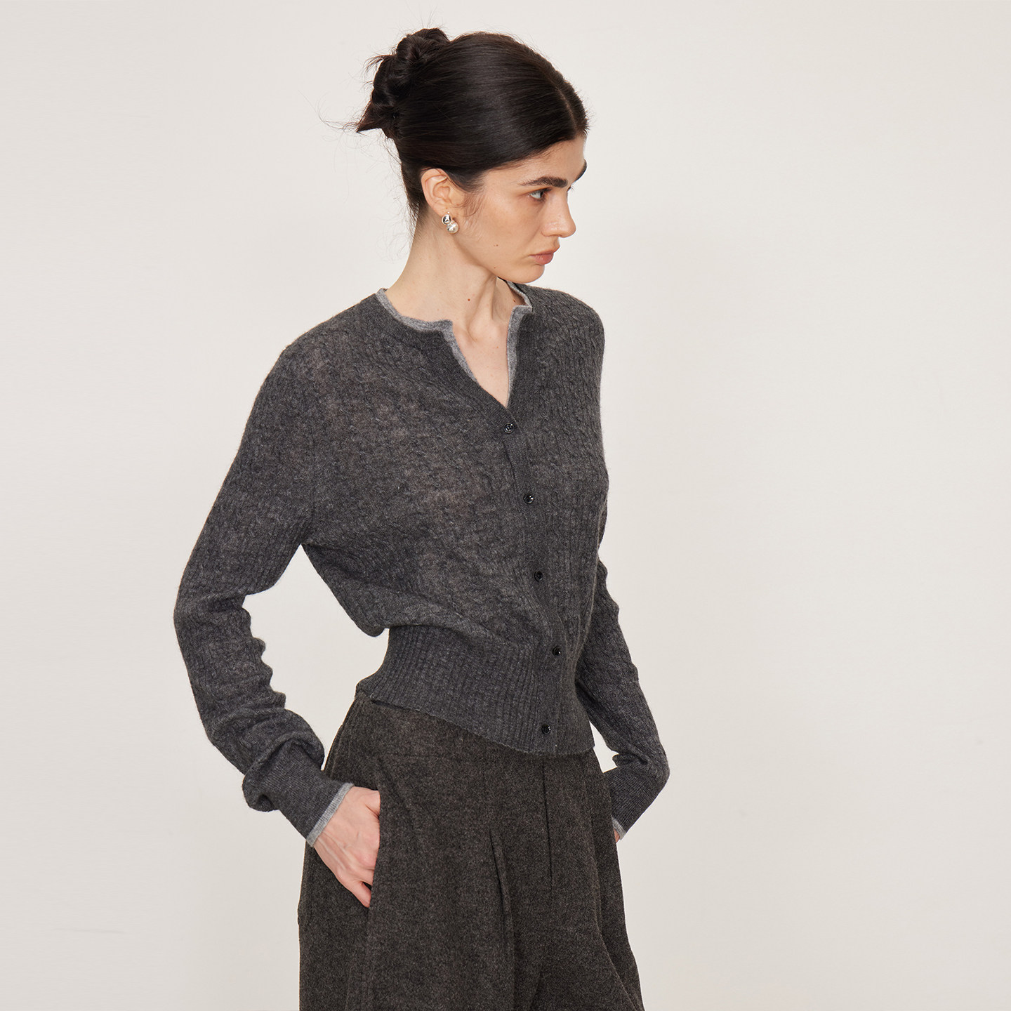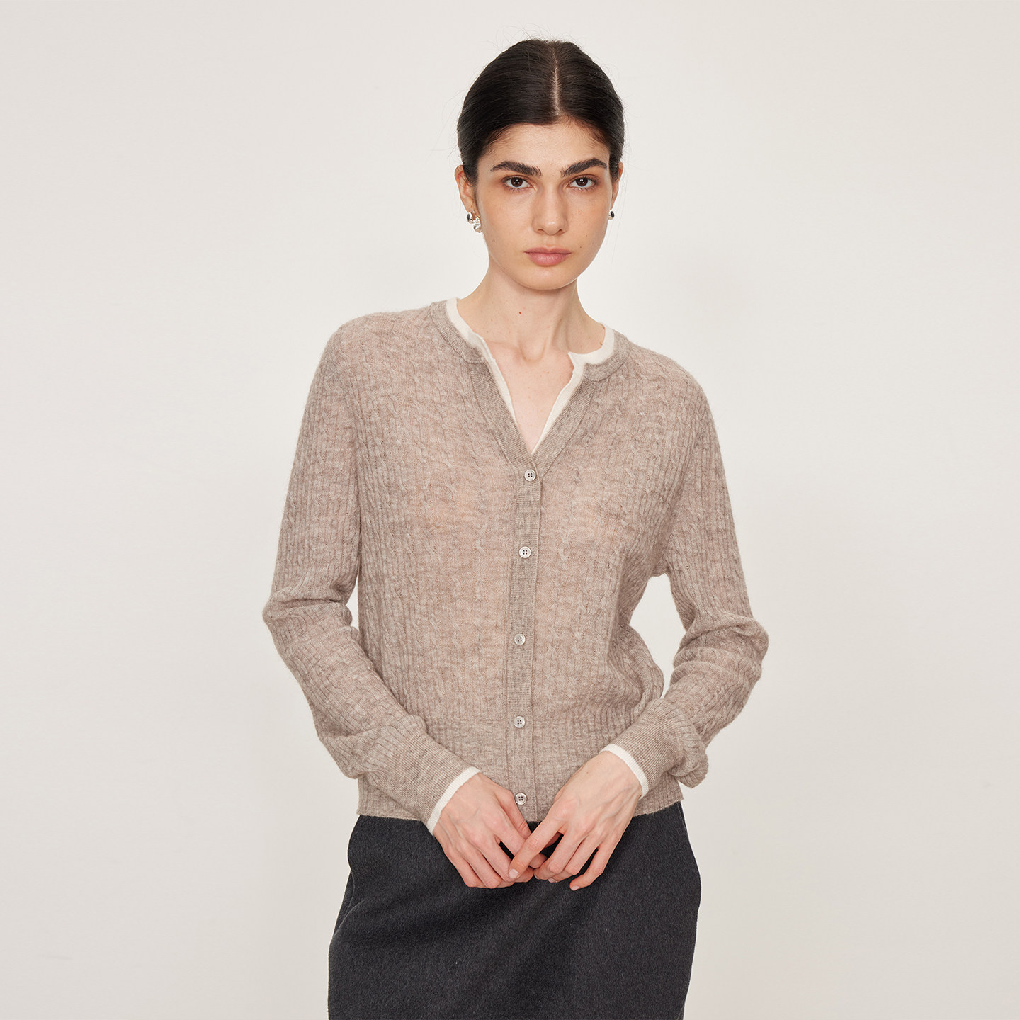 NANCYLILI假两件毛衣灰驼色针织开衫女新款内搭长袖上衣打底衫