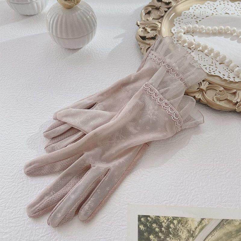 防晒手套女式薄款夏季触控屏幕防滑司机骑电动车冰丝蕾丝短款开车