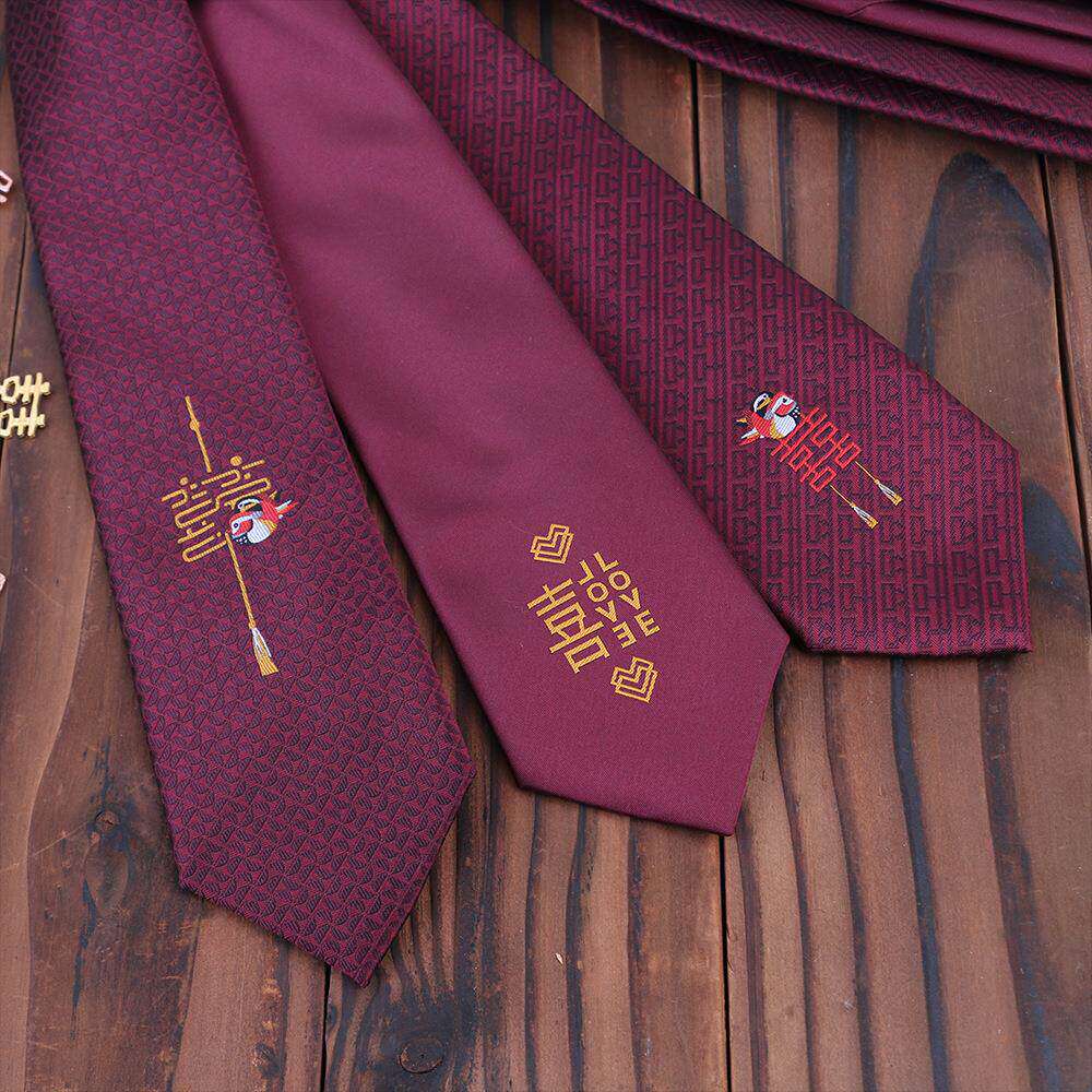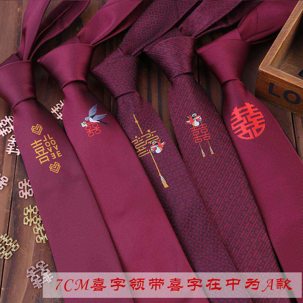 男士结婚新郎喜字喜鹊红色婚礼中国风正装喜庆手打领带拉链
