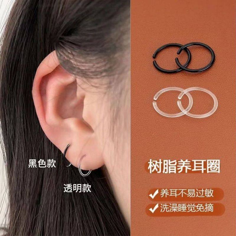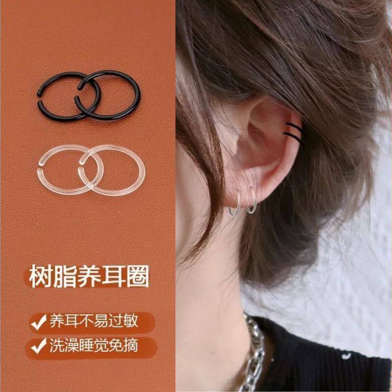 树脂耳圈养耳洞透明隐形耳钉女耳环抗过敏耳骨环睡觉不用摘防堵针