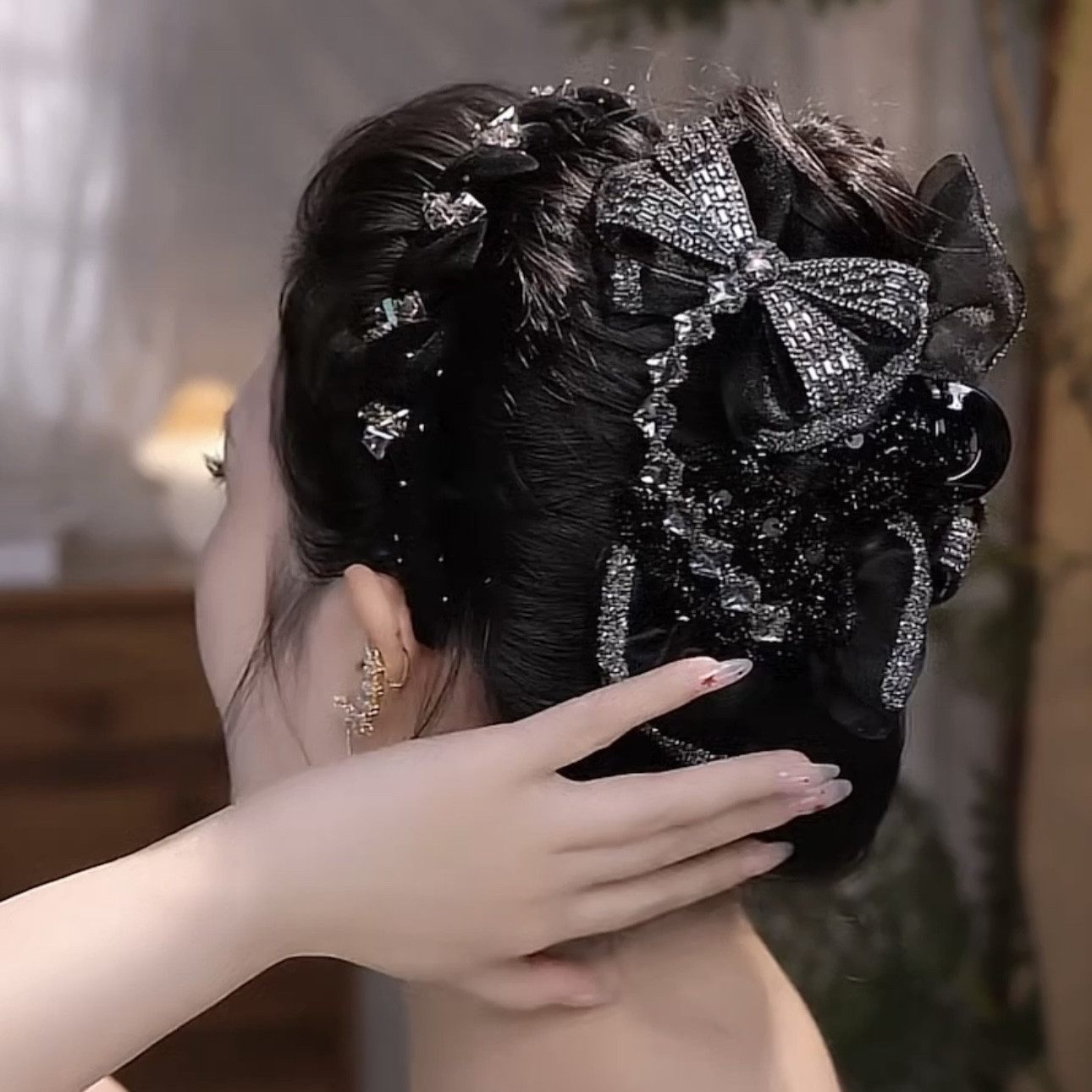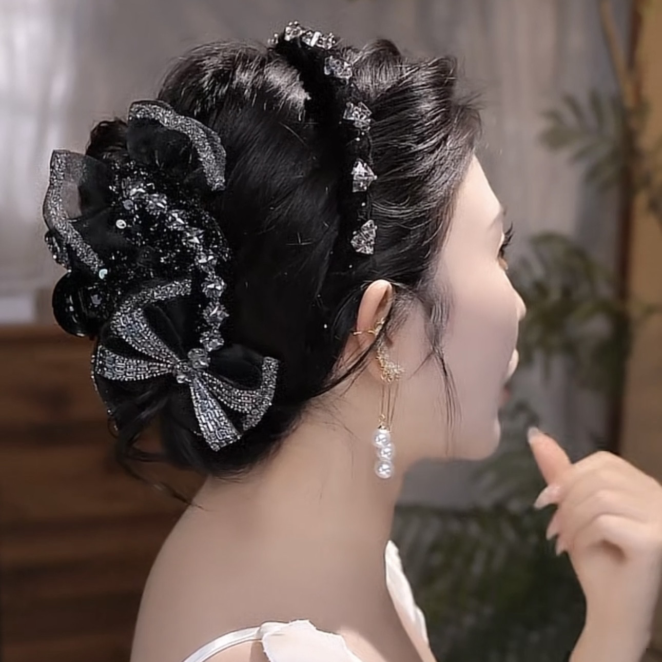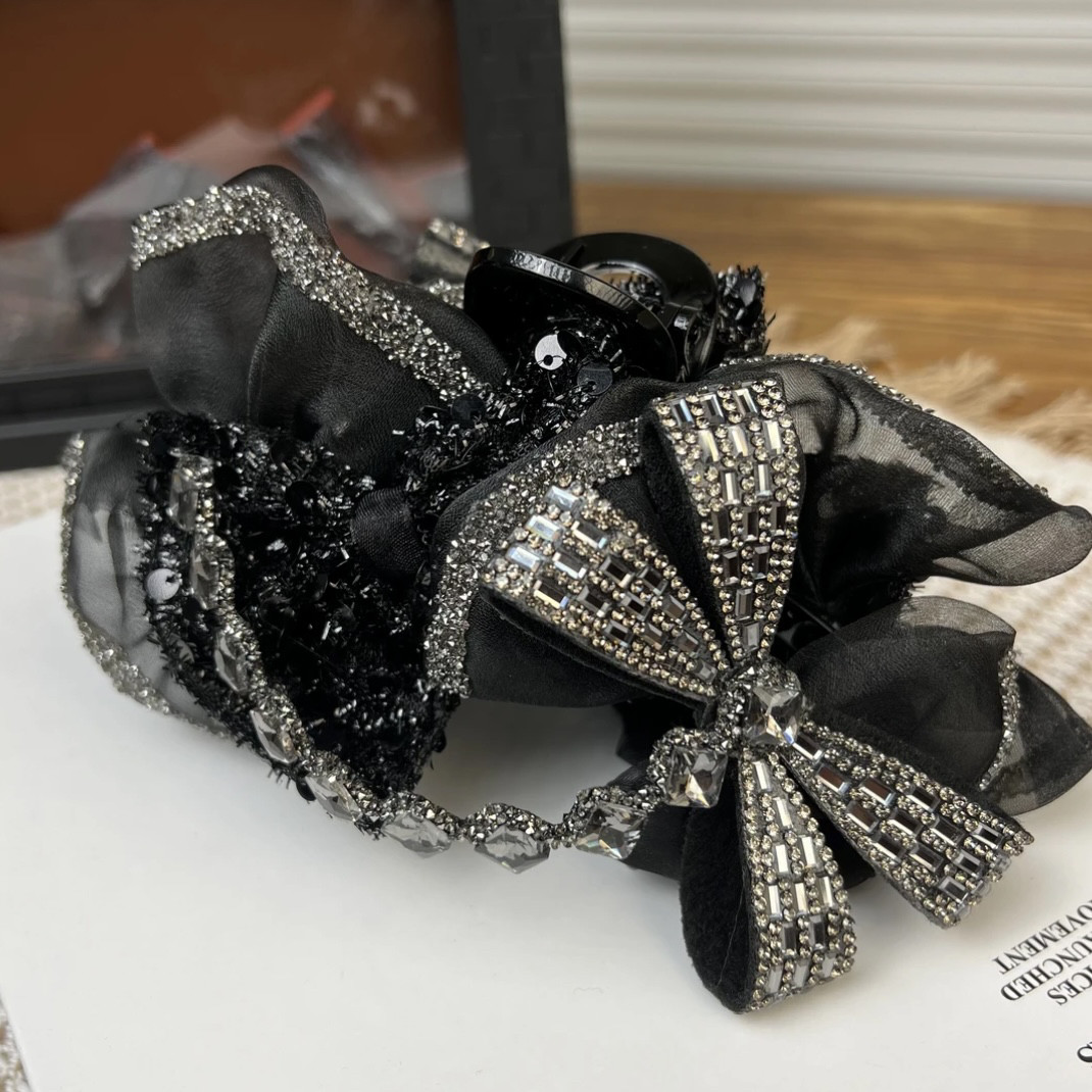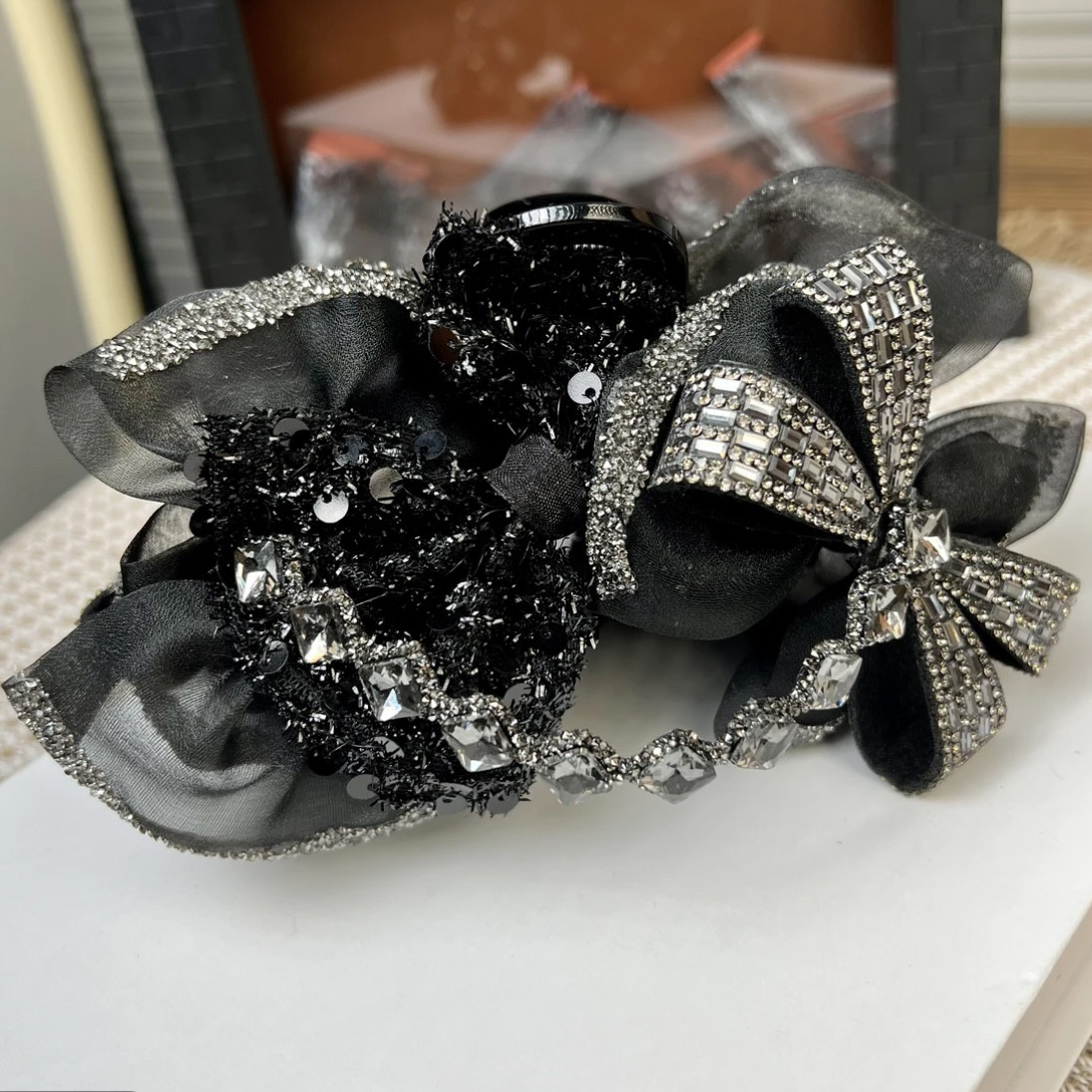 新款重工亮片百搭蝴蝶结鲨鱼夹时尚气质后脑勺盘发高颅顶发夹发饰