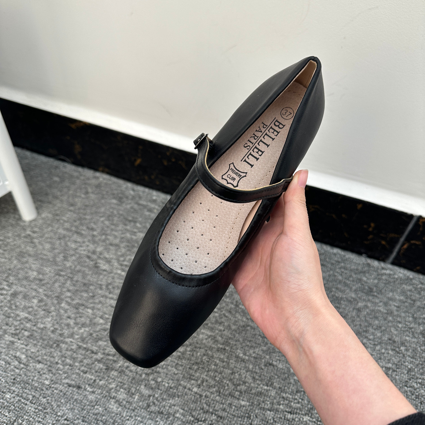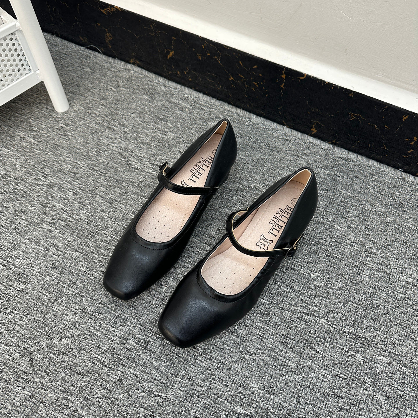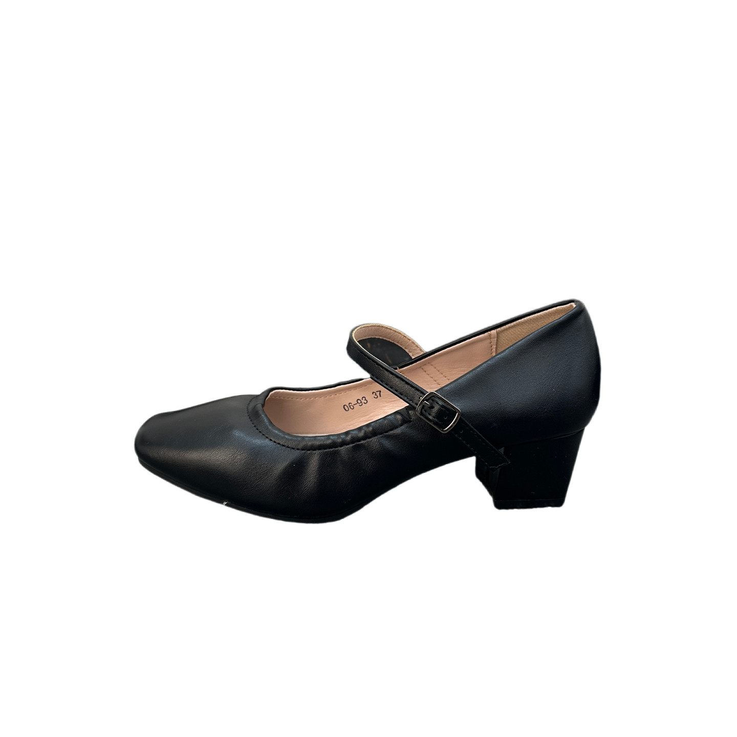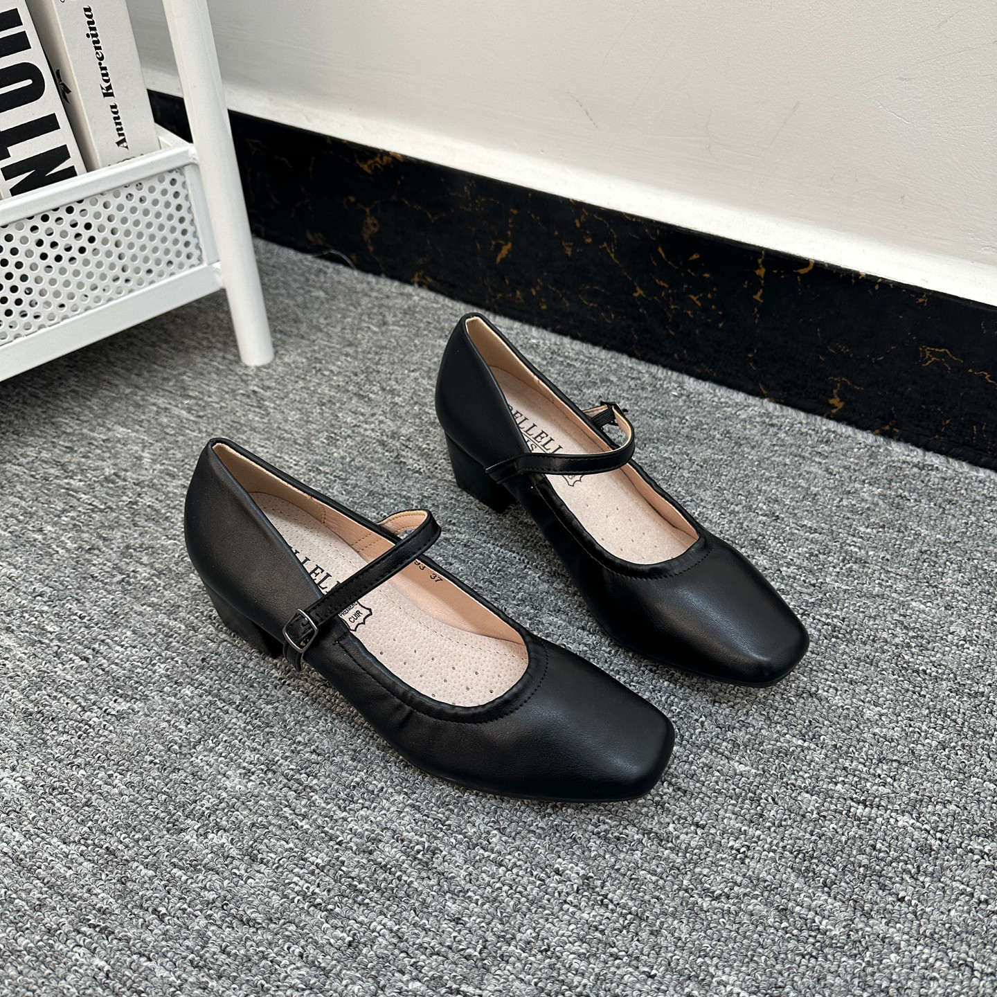 法国单 方头一字扣高跟鞋女优雅百搭透气软垫粗跟防滑工作单鞋