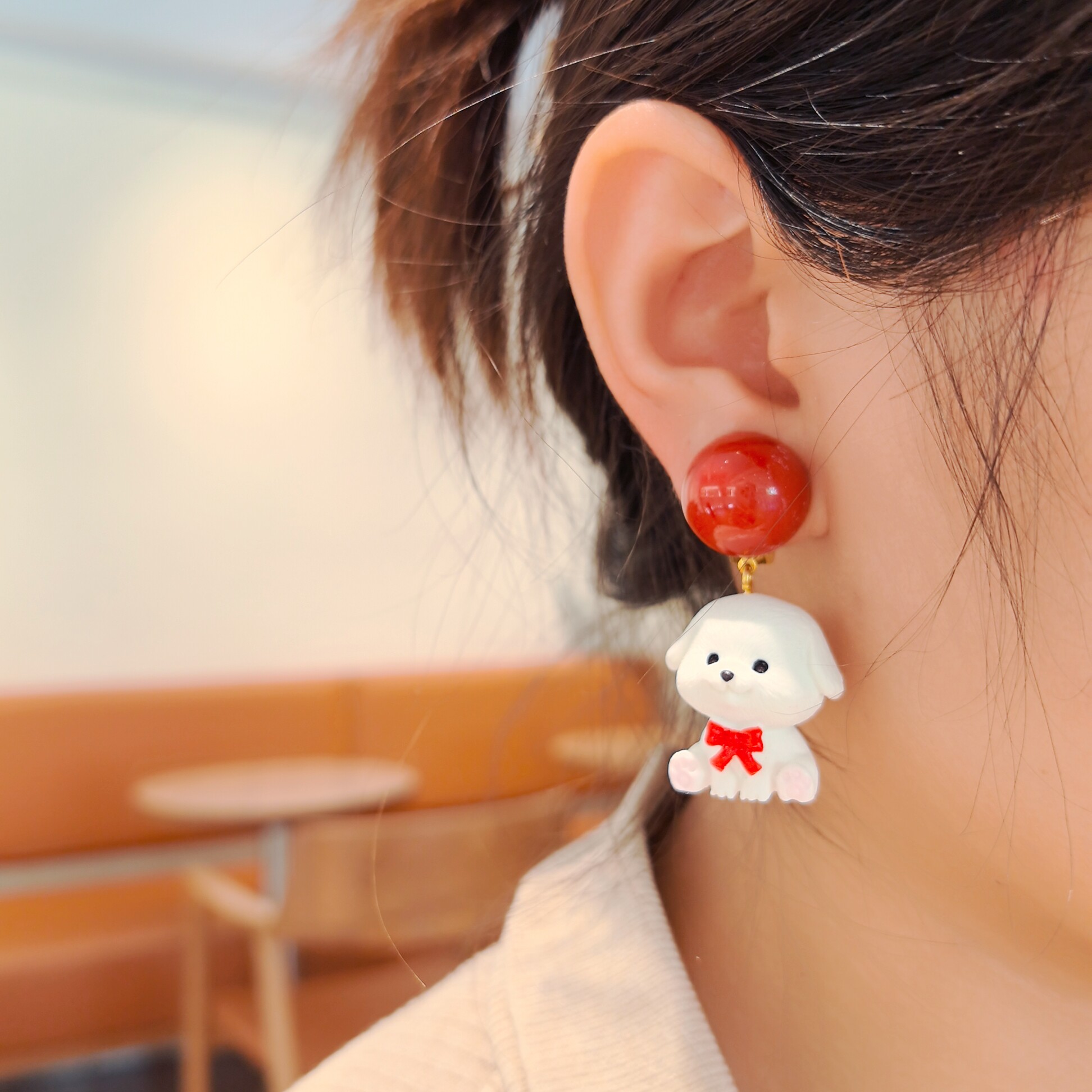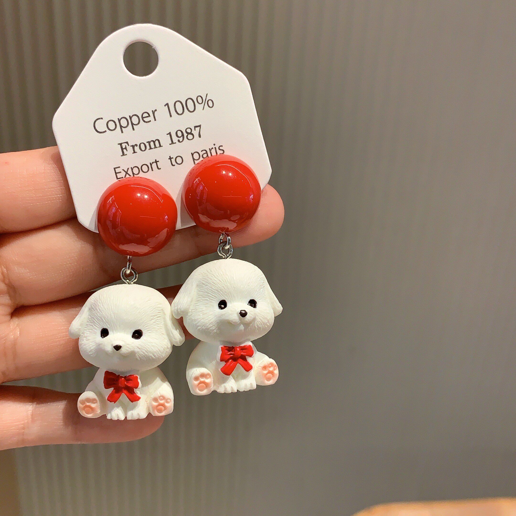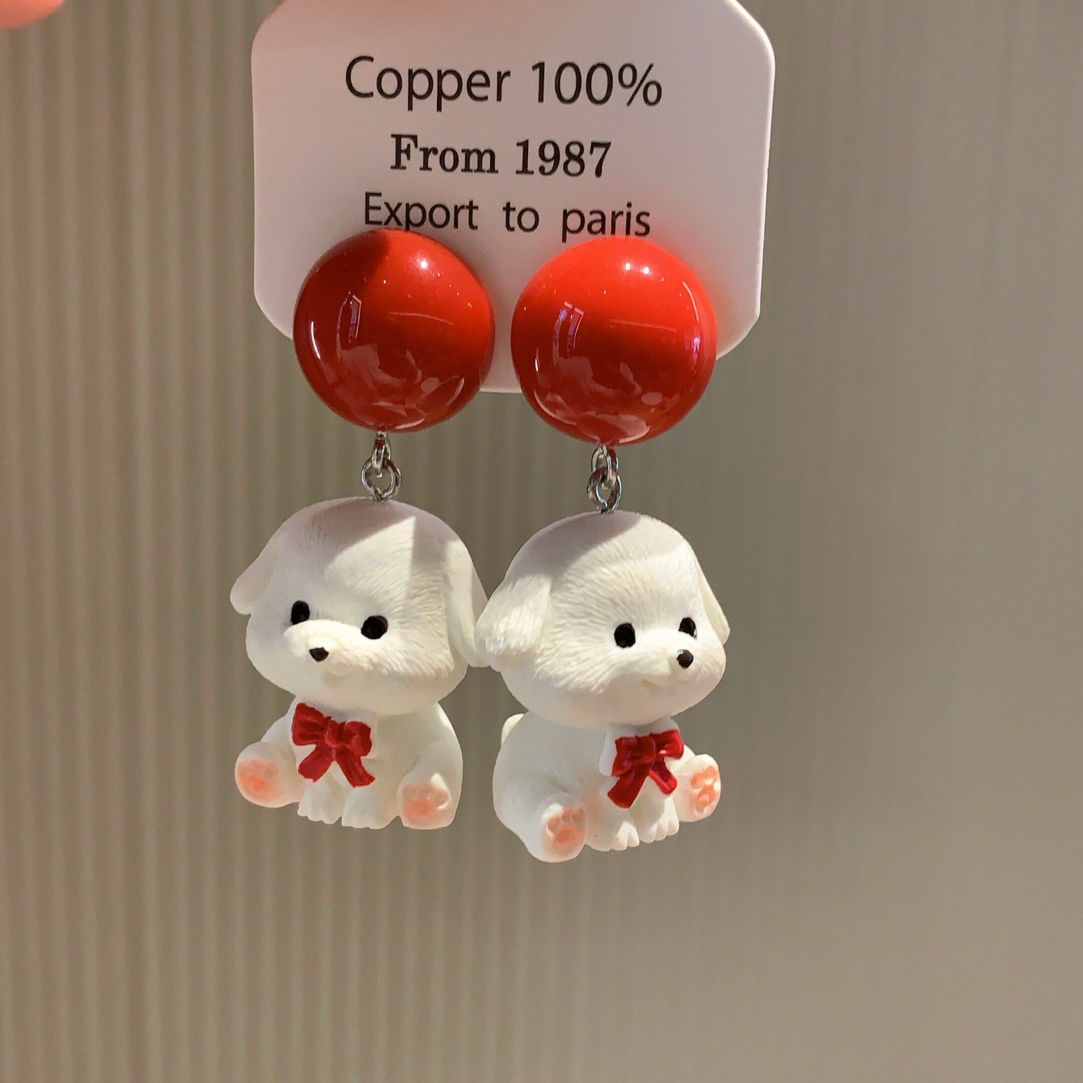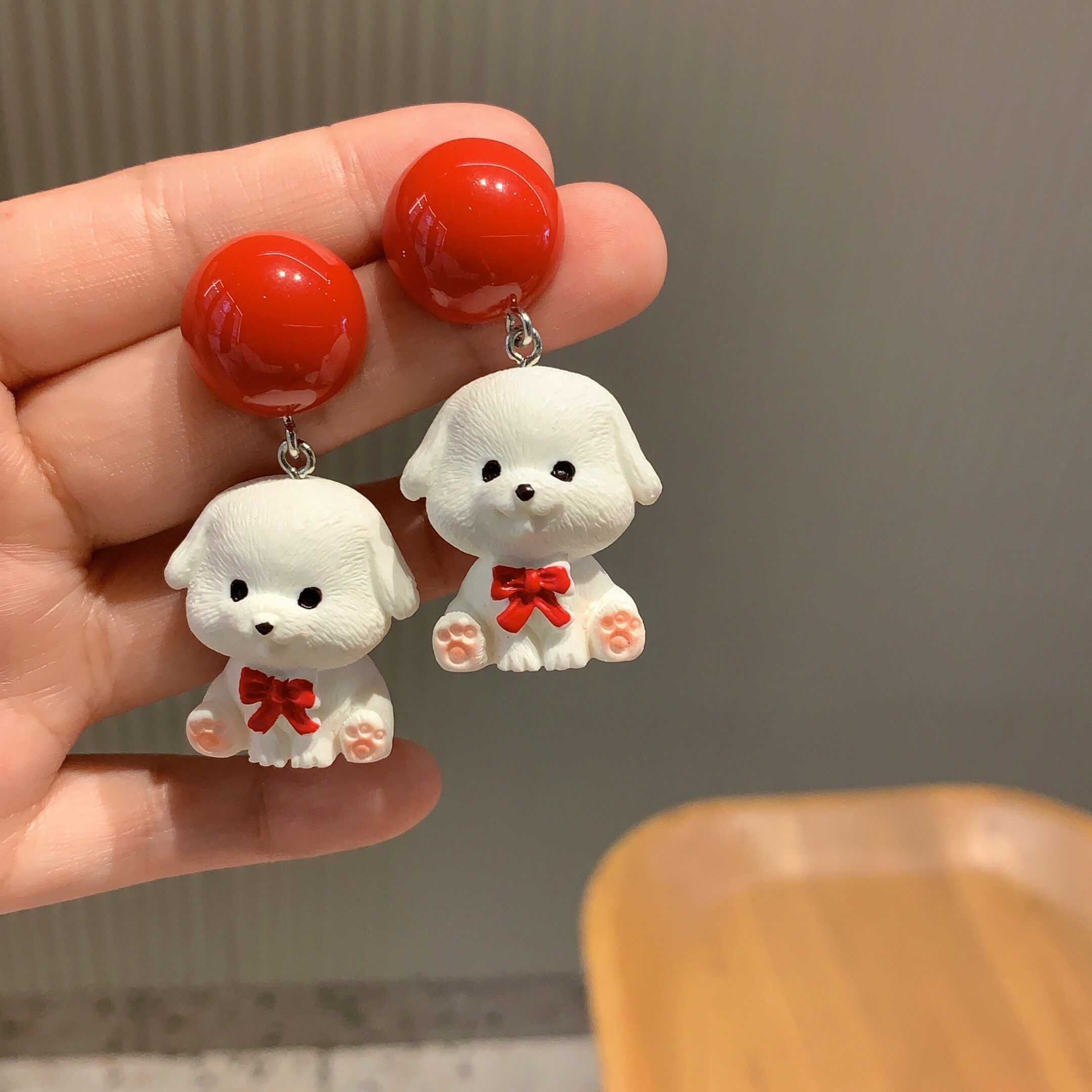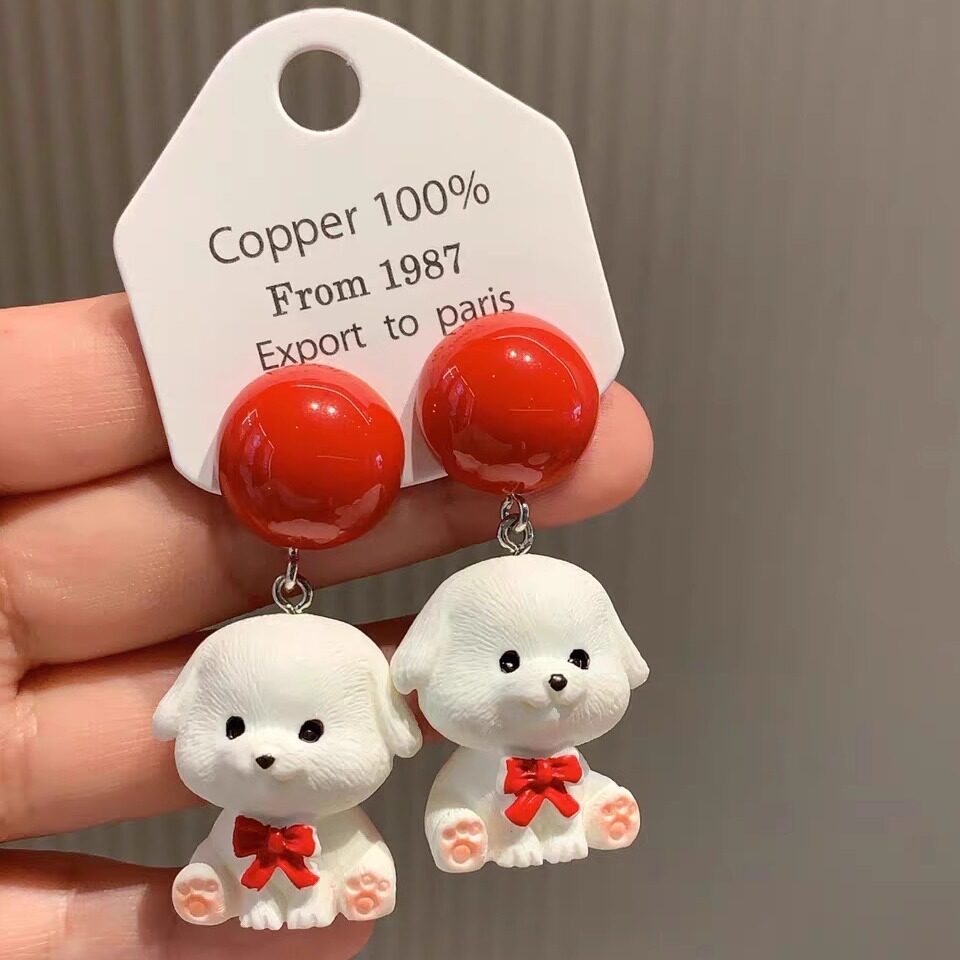 沐琪 原创手作趣味卡通可爱小狗百搭耳环比熊无洞耳夹女