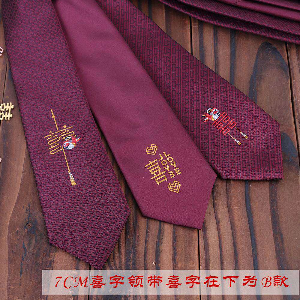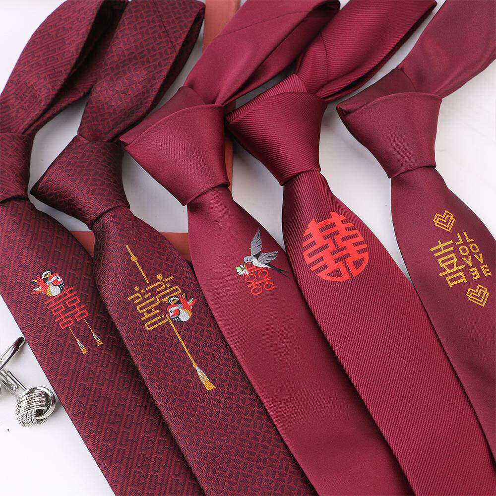 新婚结婚男士新郎喜字领带喜鹊中国风红色手打领带拉链直供