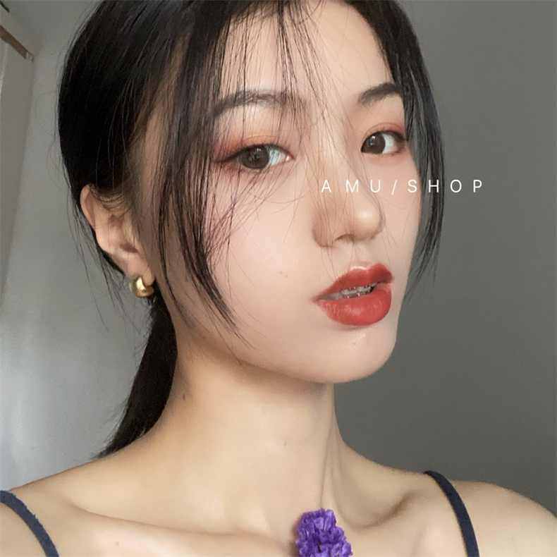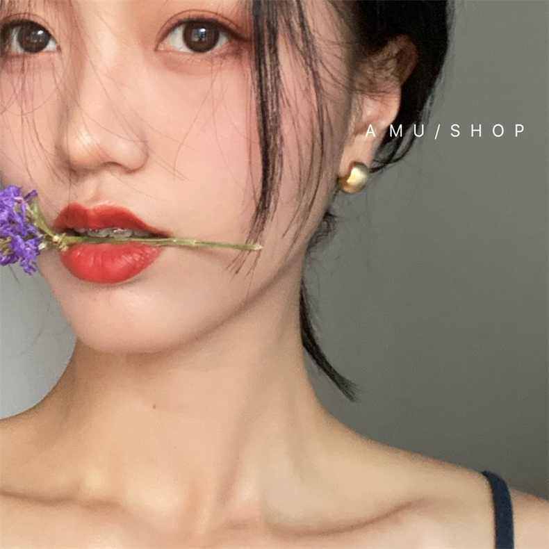 包邮!A.MU 小魔豆 / 法式复古磨砂拉丝哑金高级感耳钉耳环女