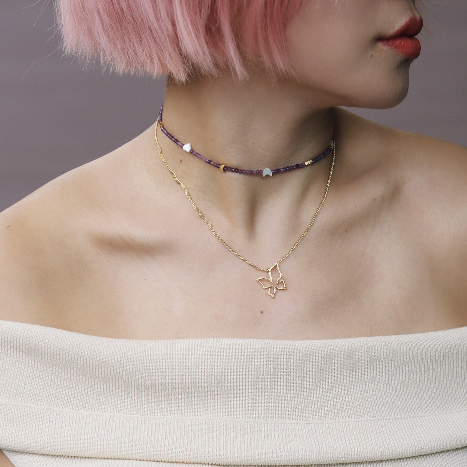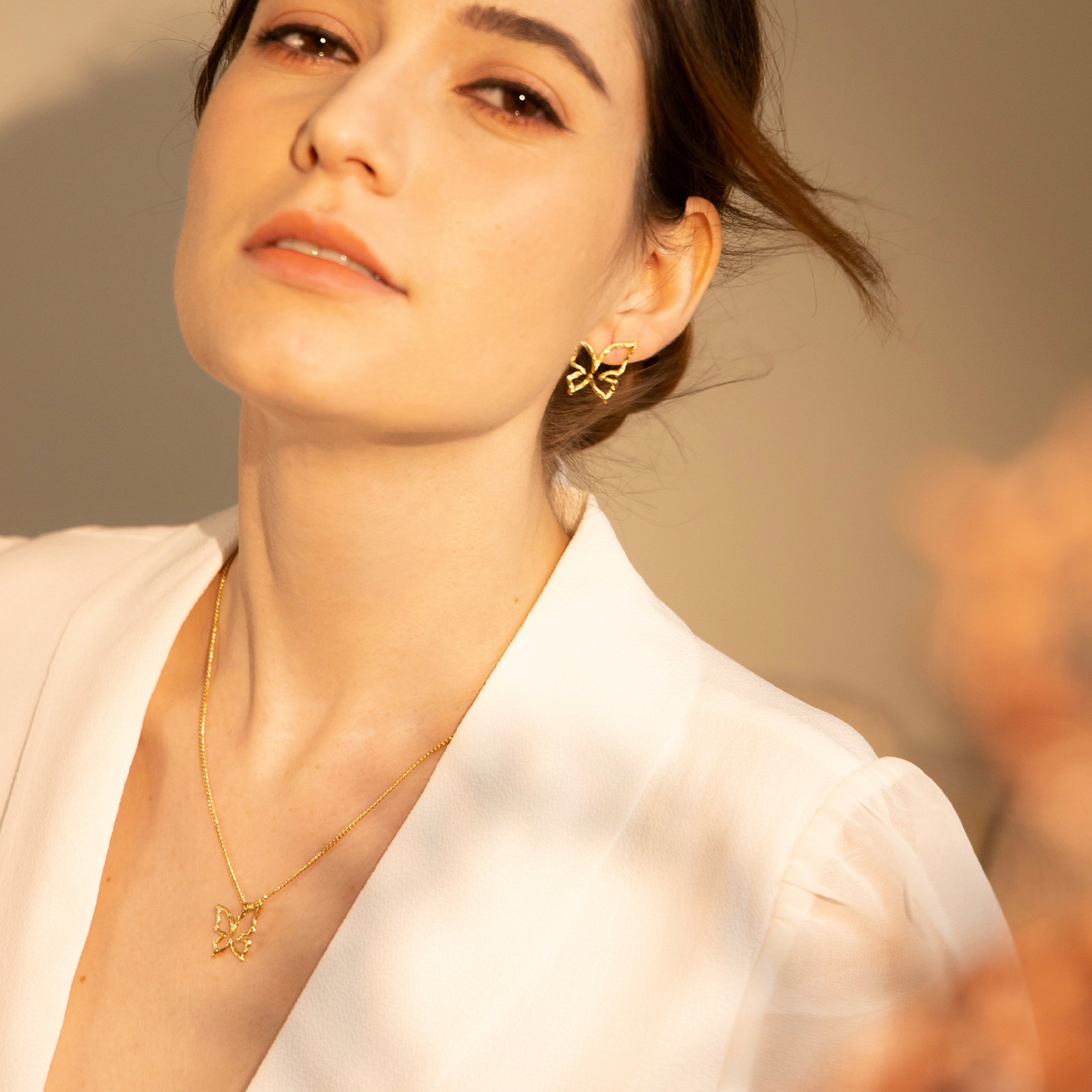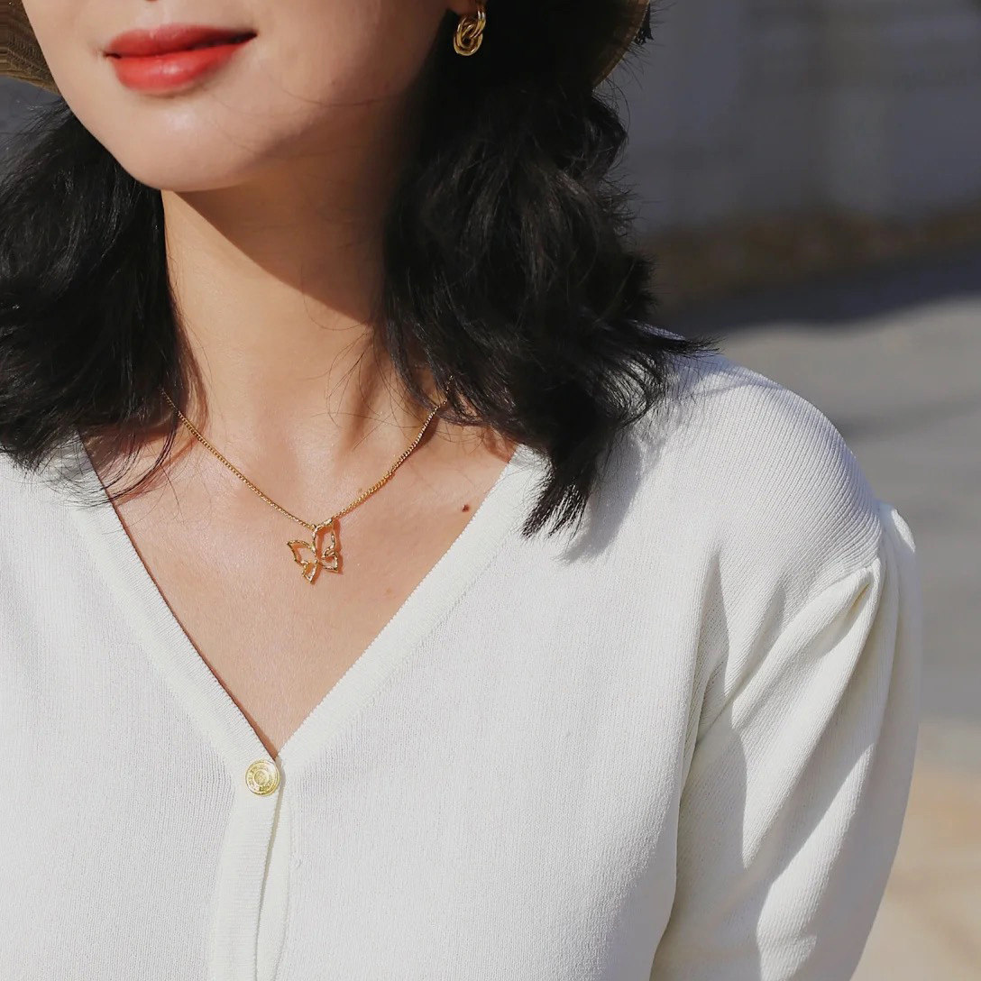 Butterfly蝴蝶项链18K重镀金手工肌理感简约精致通勤圣诞节礼物