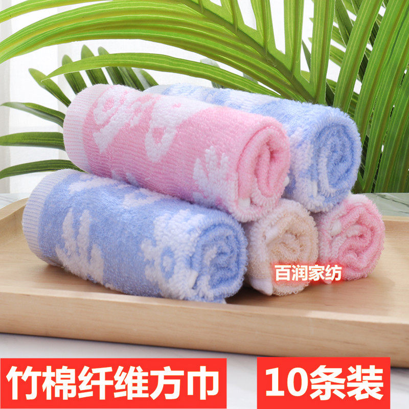 10条装四方巾小毛巾童巾柔软竹纤维加纯棉吸水婴幼儿园洗脸擦手巾