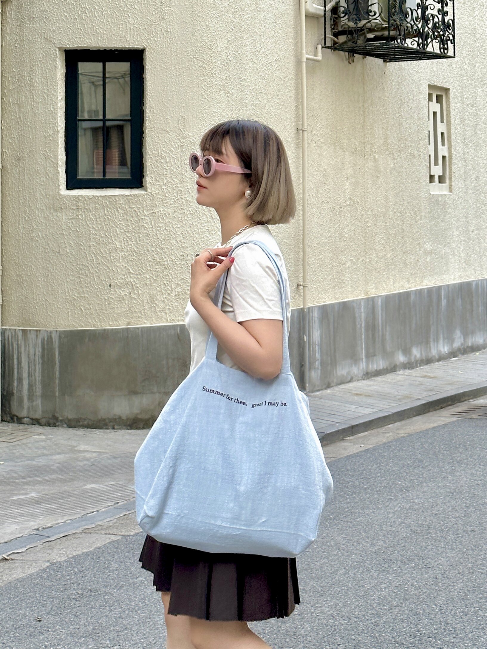 BLEU et ROSE【日落海滩】原创亚麻大容量帆布袋旅行收纳包单肩包