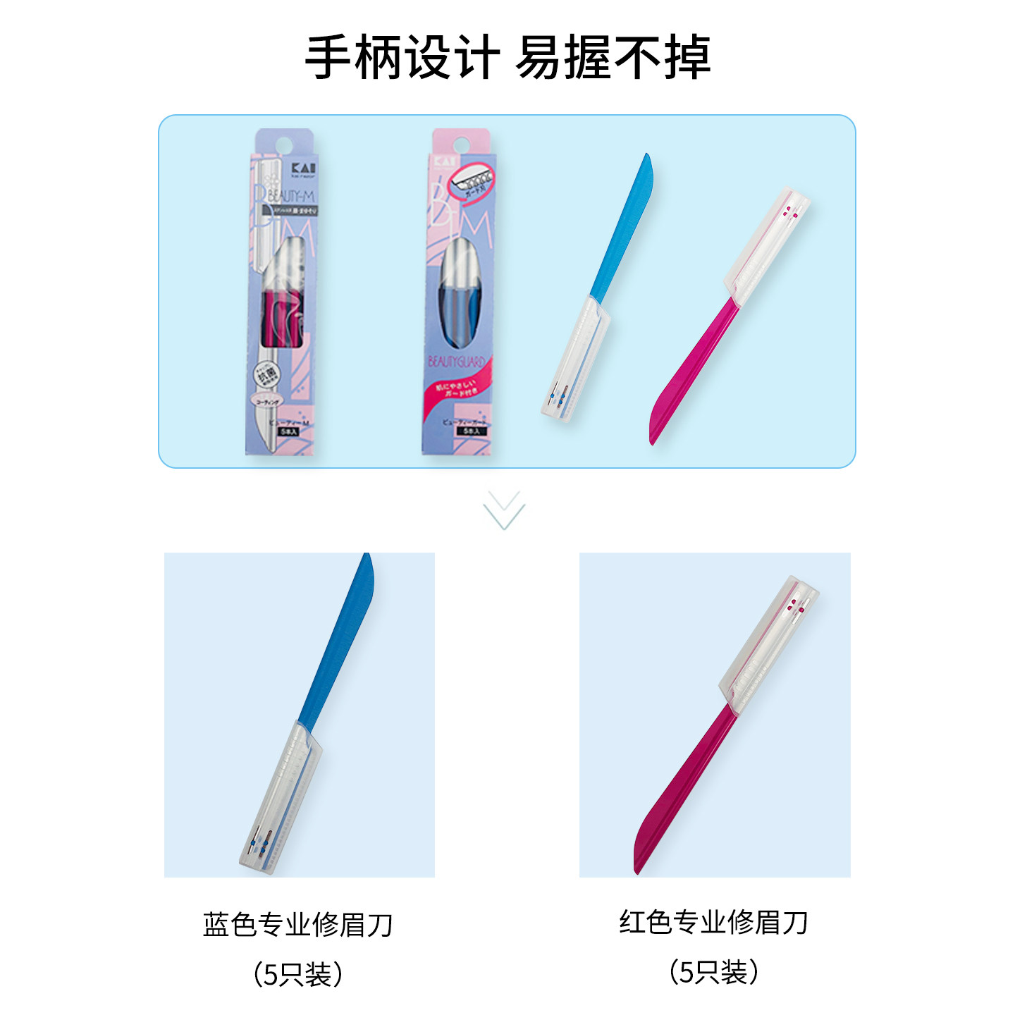 包邮日本KAI贝印安全专业修眉刮眉刀 粉色蓝色修眉刀修眉神器套装