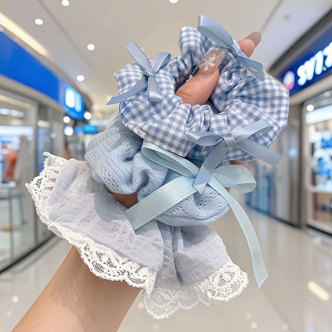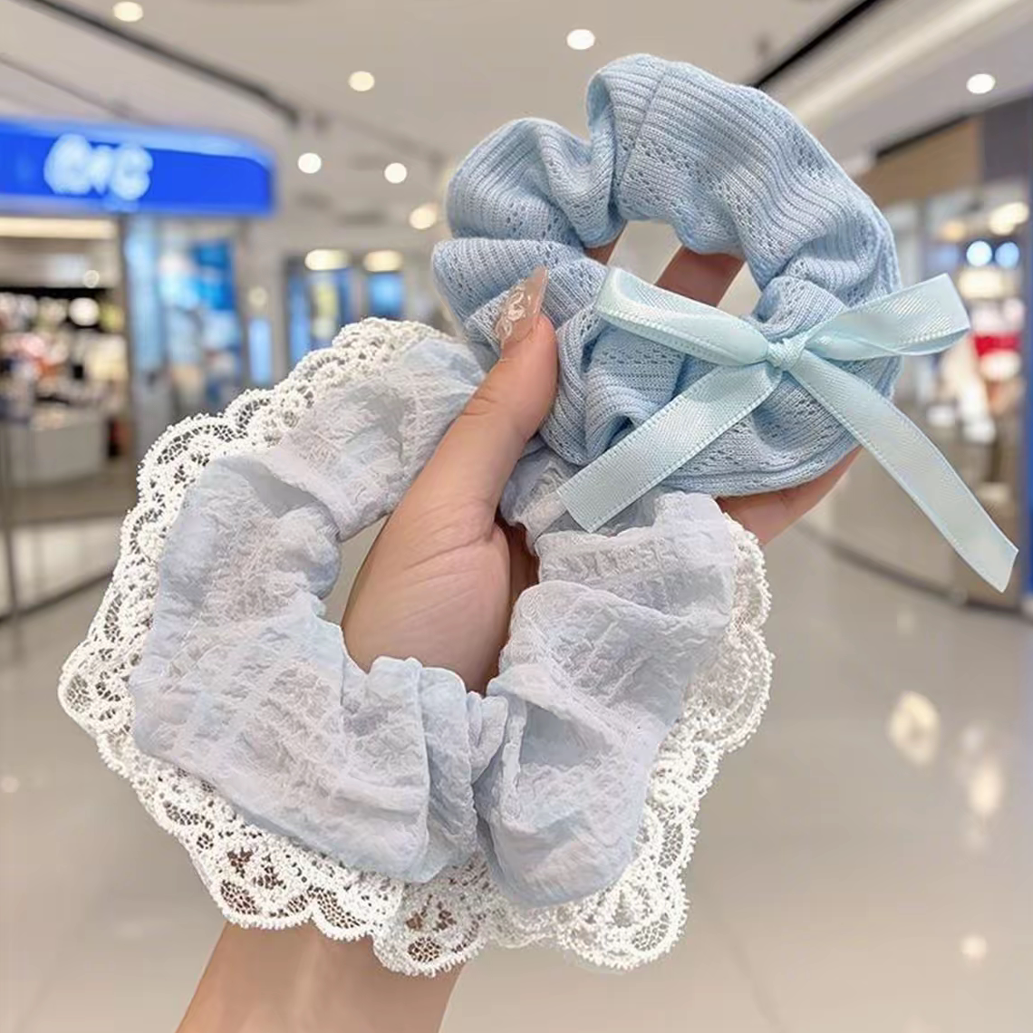 韩系儿童蕾丝蝴蝶结花边发圈女童可爱扎丸子头发绳高弹力皮筋发饰