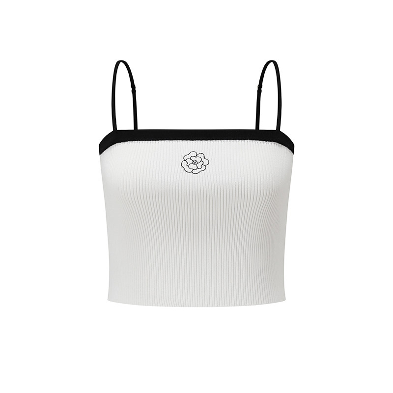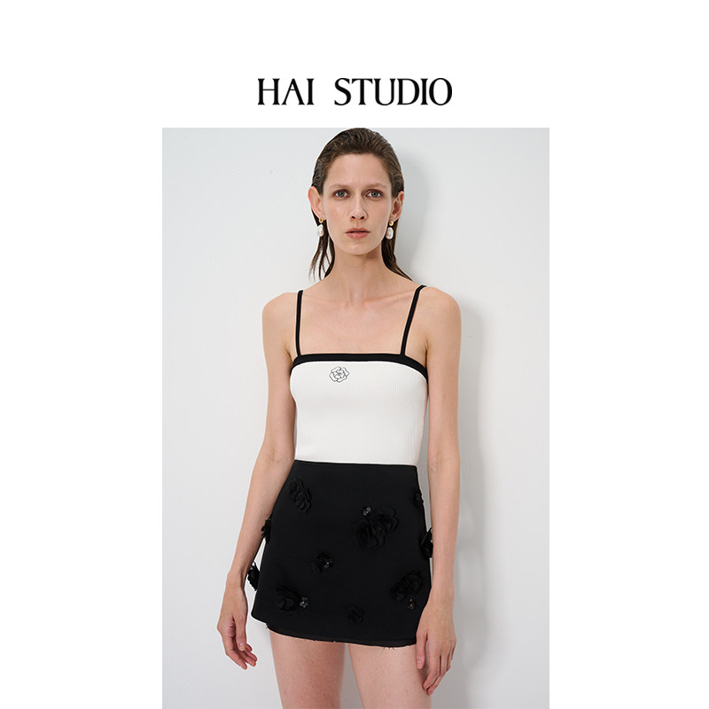 HAI STUDIO春夏针织刺绣花朵抹胸 拼色吊带背心外穿背心内搭上衣