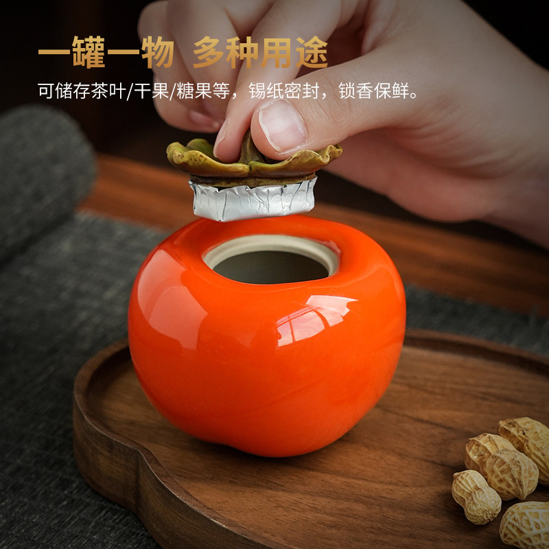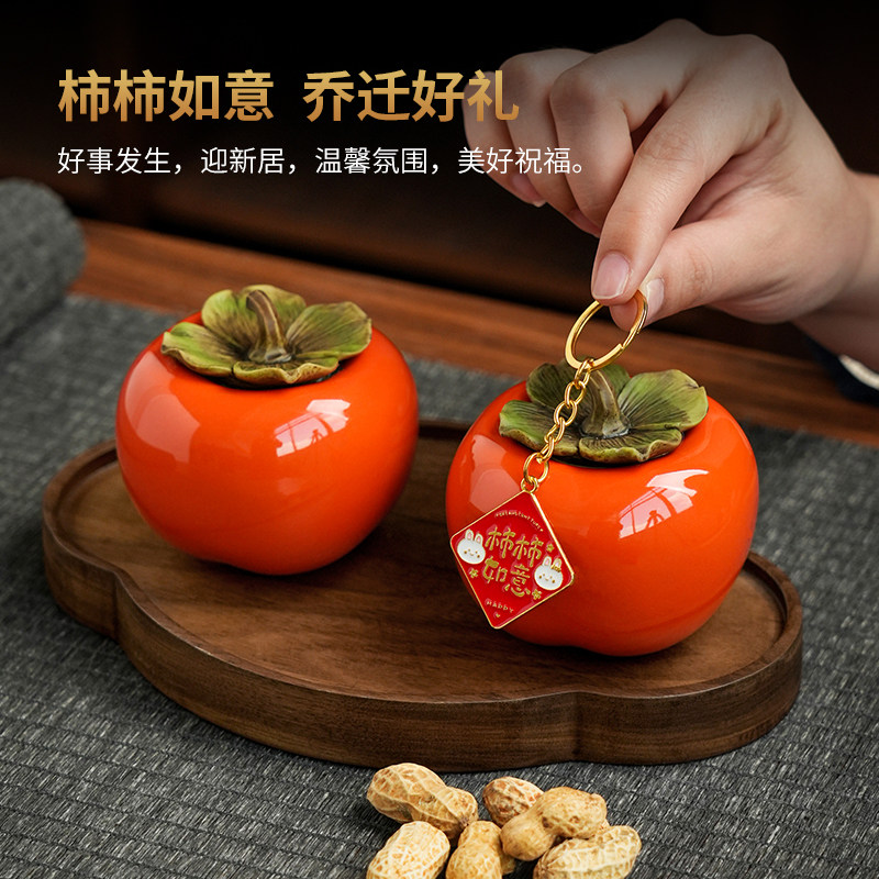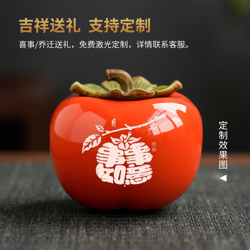 可定制陶瓷柿子储藏罐摆件中式喜庆茶室桌面装饰品节日公司伴手礼