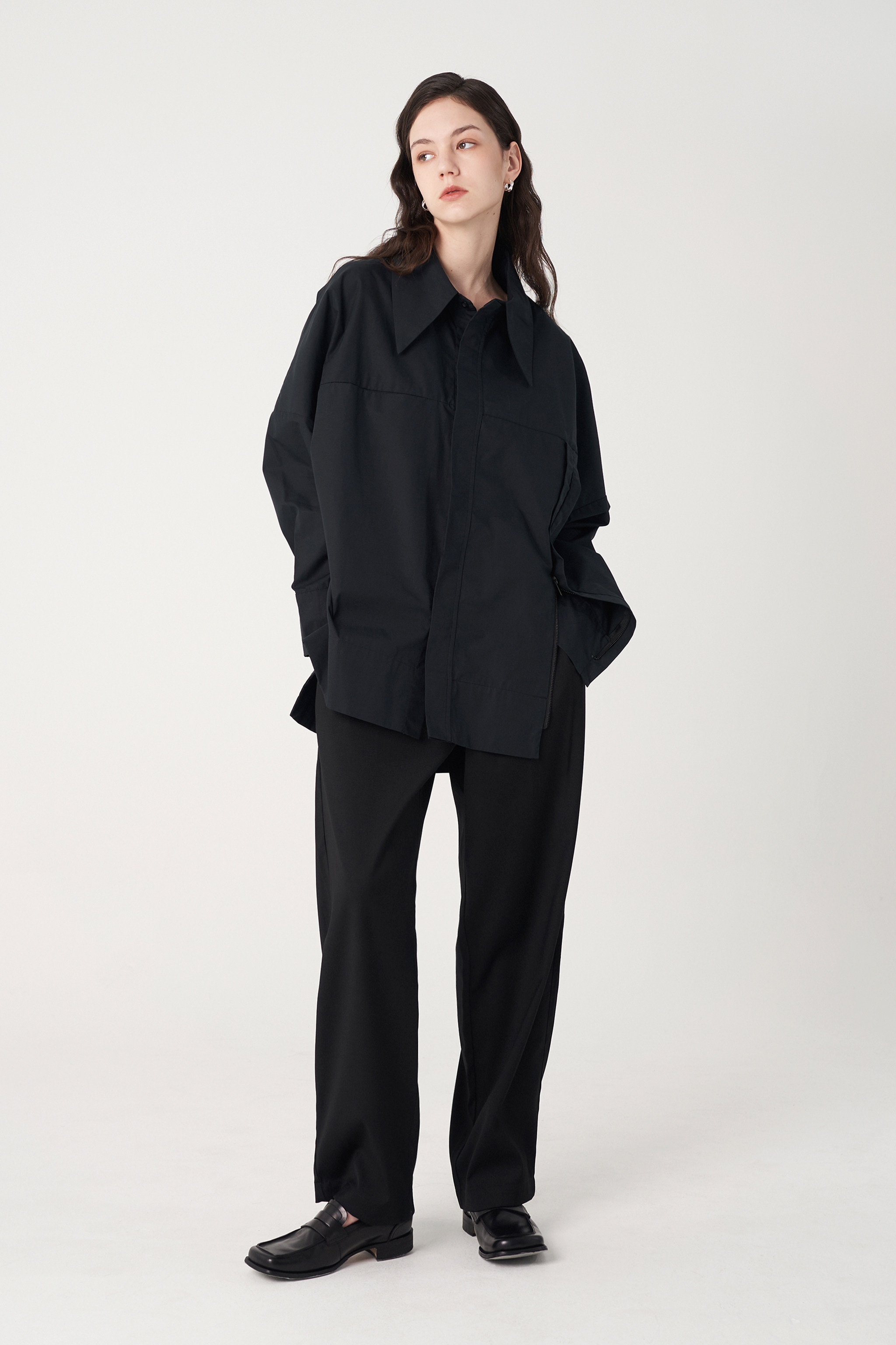 INCOG清仓原创小众设计无性别高级感oversized法式尖领衬衫不退换