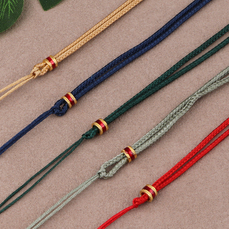 吊坠挂绳翡翠玉配黄金可调节挂脖项链绳男女手工编织纯色挂坠绳