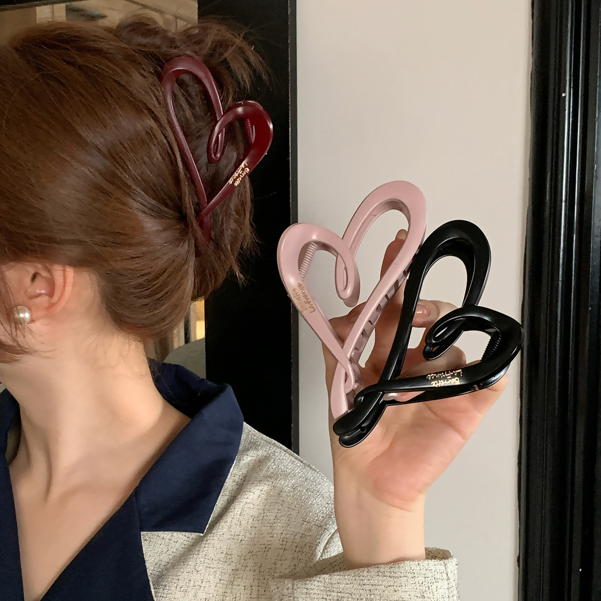 雾面金标爱心抓夹大号鲨鱼夹后脑勺盘发夹发量多发卡高级感发饰品