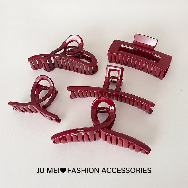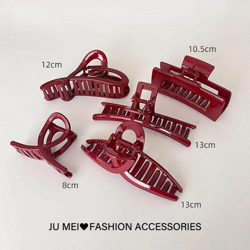暗红色亚克力抓夹洋气高级感后脑勺盘发鲨鱼夹新年红发饰发卡女