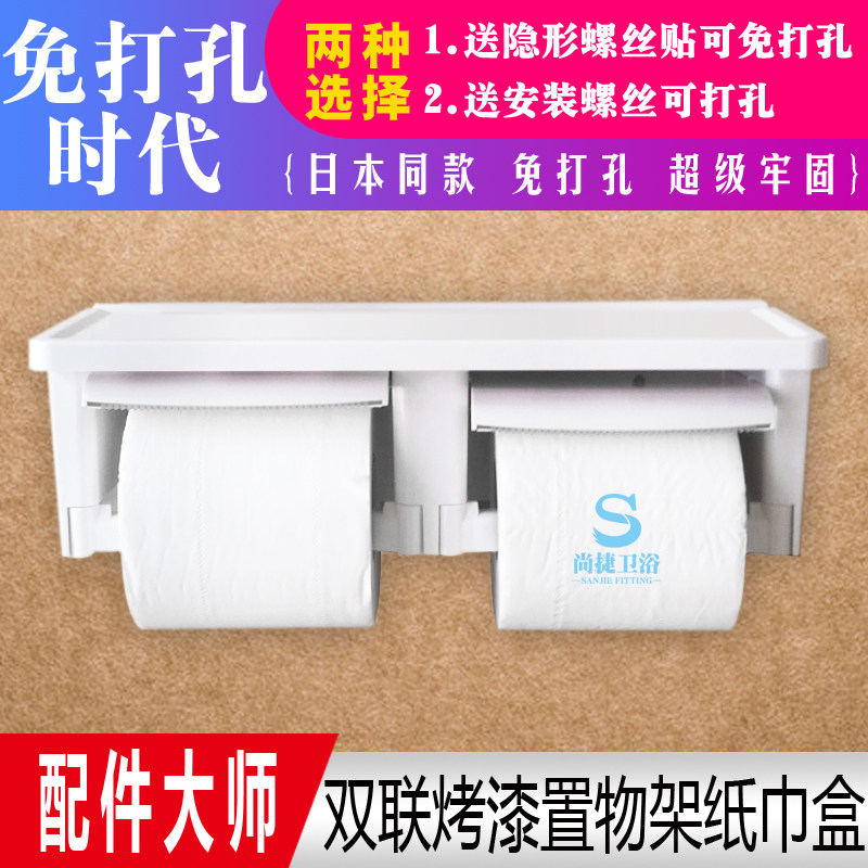 免打孔纸巾架ABS双联酒店厕所防水带扶手收纳纸巾盒卷纸架置物架