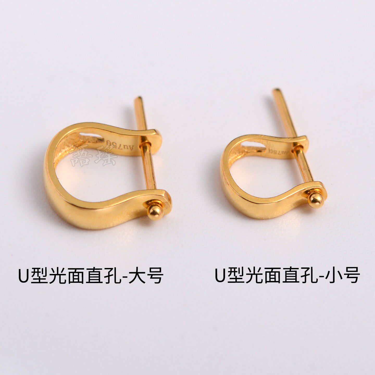18k金扣头U形镶钻au750黄金白金玉佛彩金翡翠扣头配件吊坠扣空托