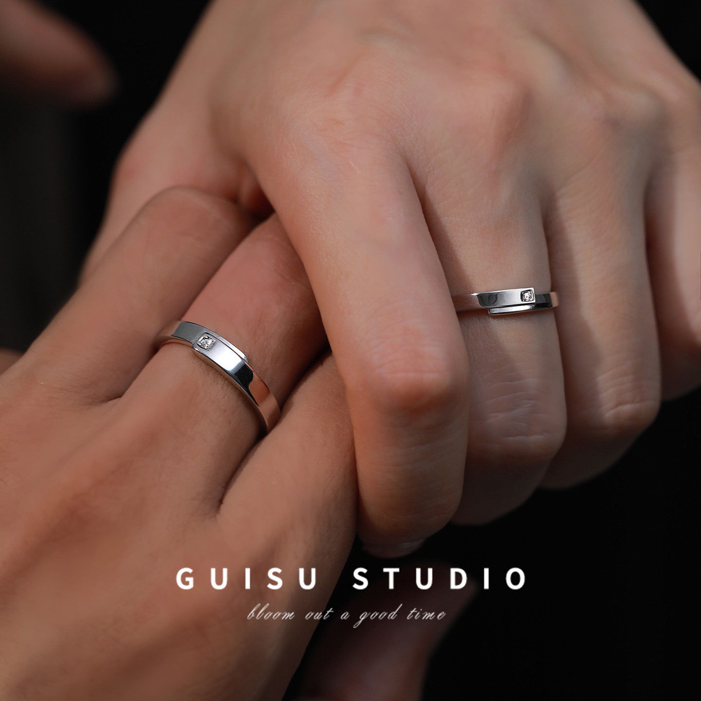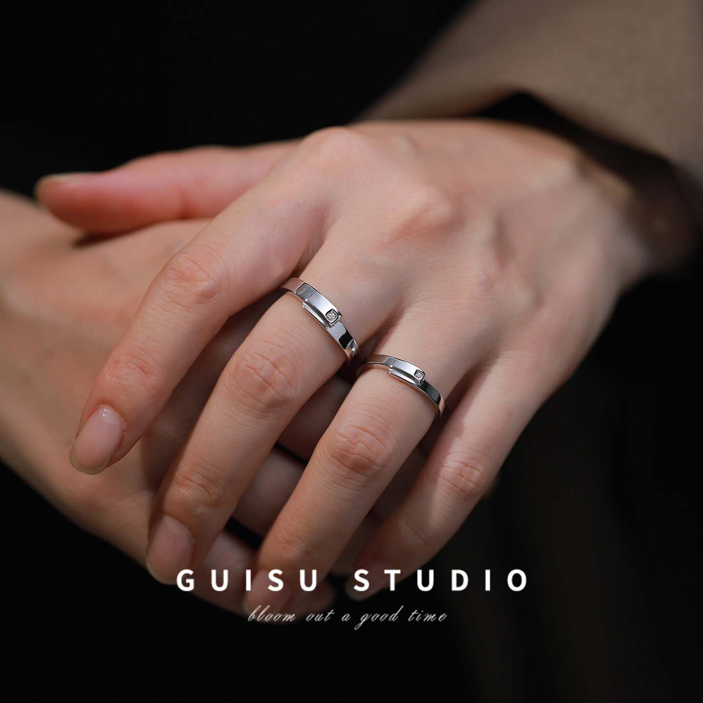 GUISU归素 不期而遇原创设计999纯银情侣对戒足银高级感戒指一对