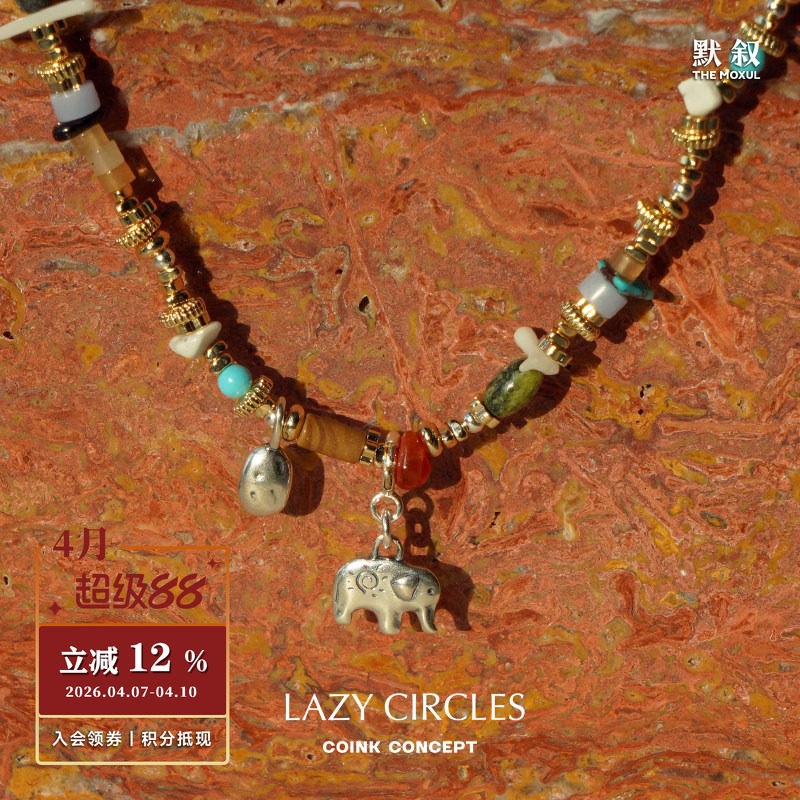 LAZY CIRCLES 天然混石小象项链 原创设计师串珠复古锁骨链 默叙