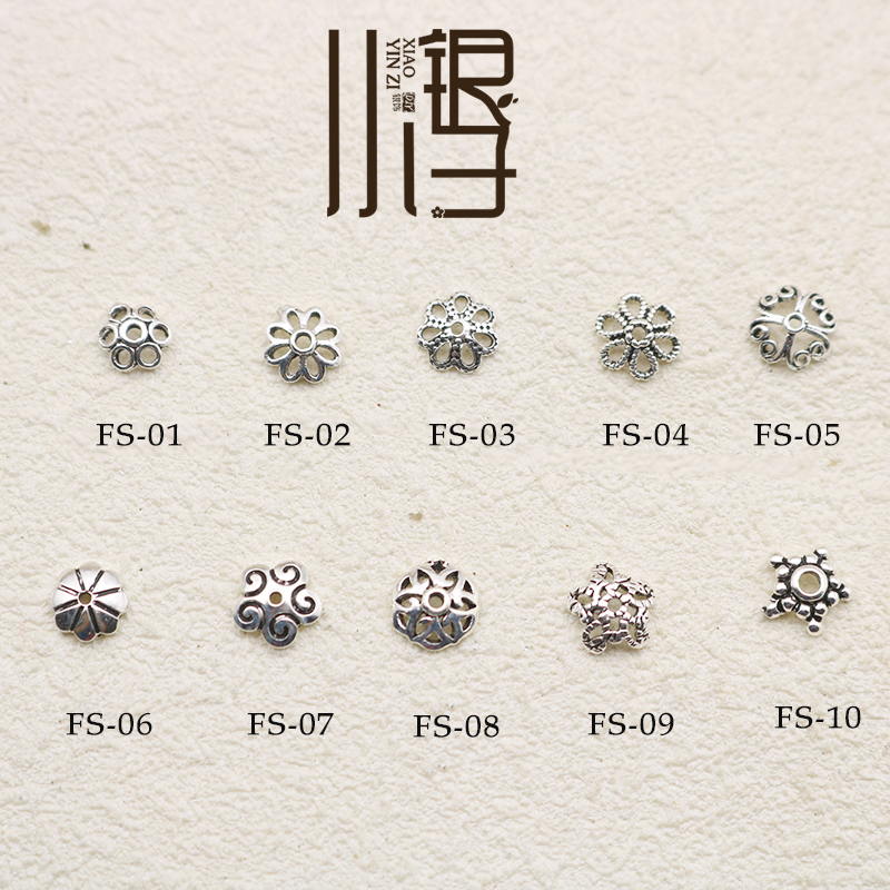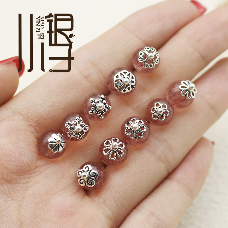 小银子银饰泰银花托小号包珠隔珠流苏帽DIY水晶手链 S925纯银配件
