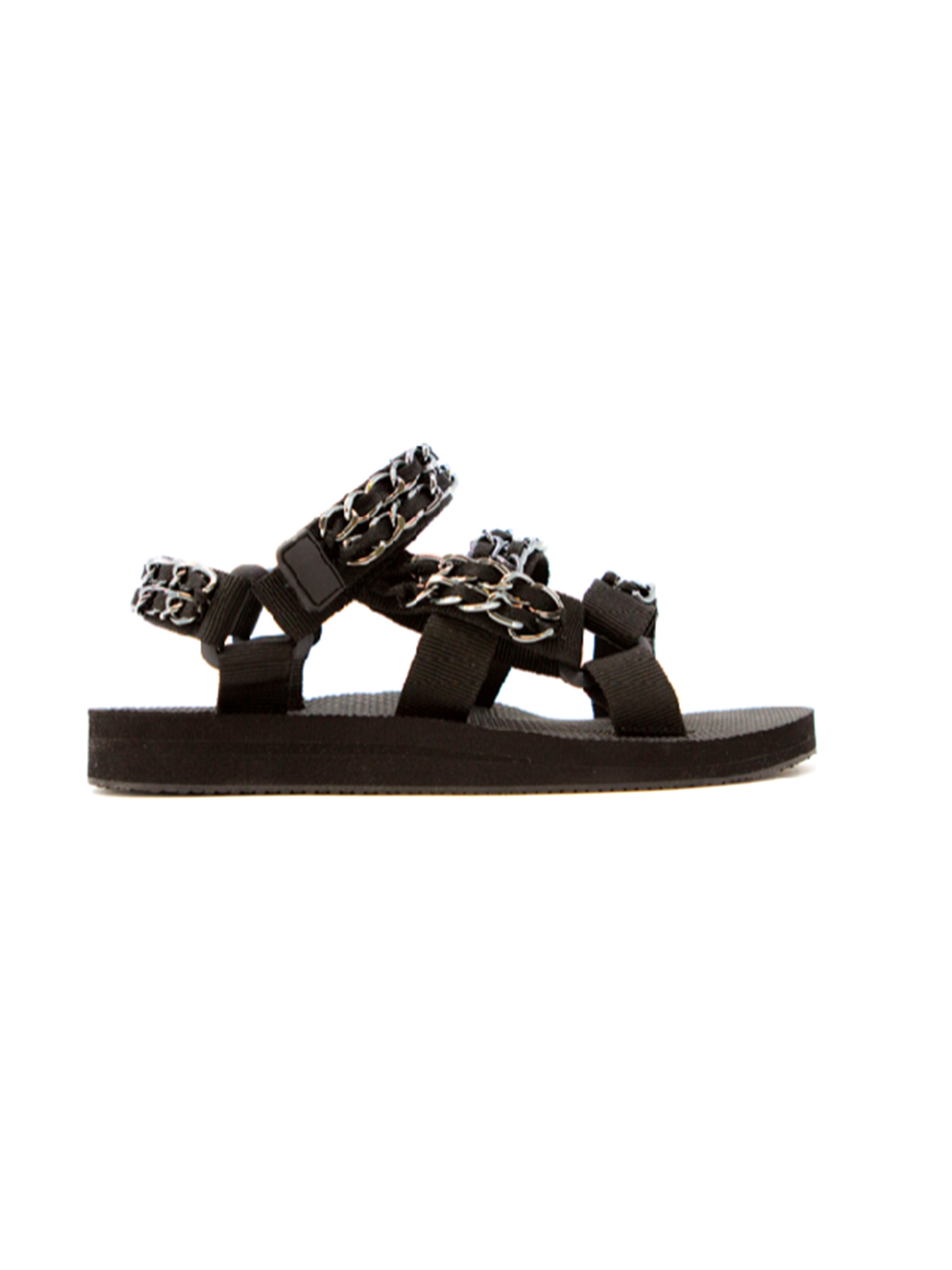 设计师品牌ArizonaLove女士休闲特雷基徒步链条平底凉鞋银色