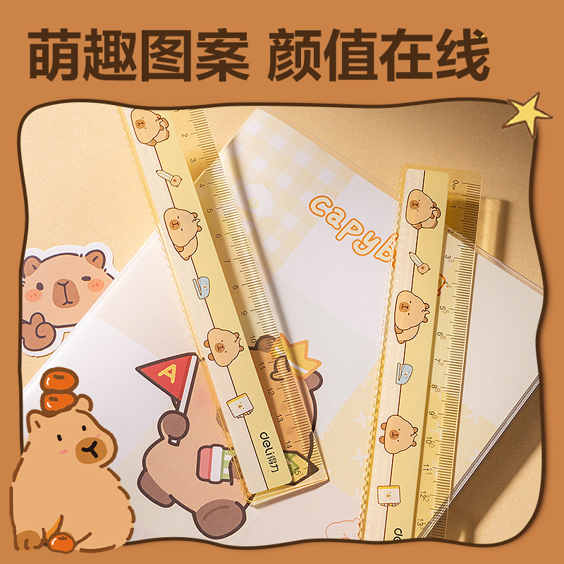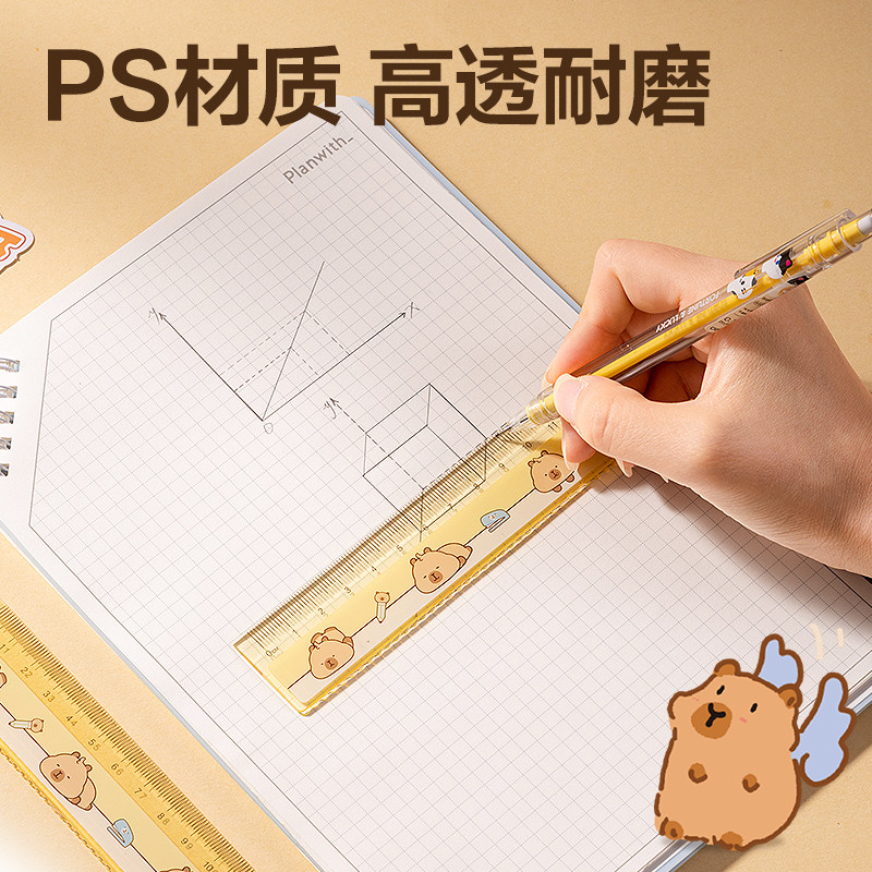 卡皮巴拉萌趣尺子直尺小学生手抄报多功能画图几何绘图初中生专用一二年级套装镂空直尺15cm高颜值格尺
