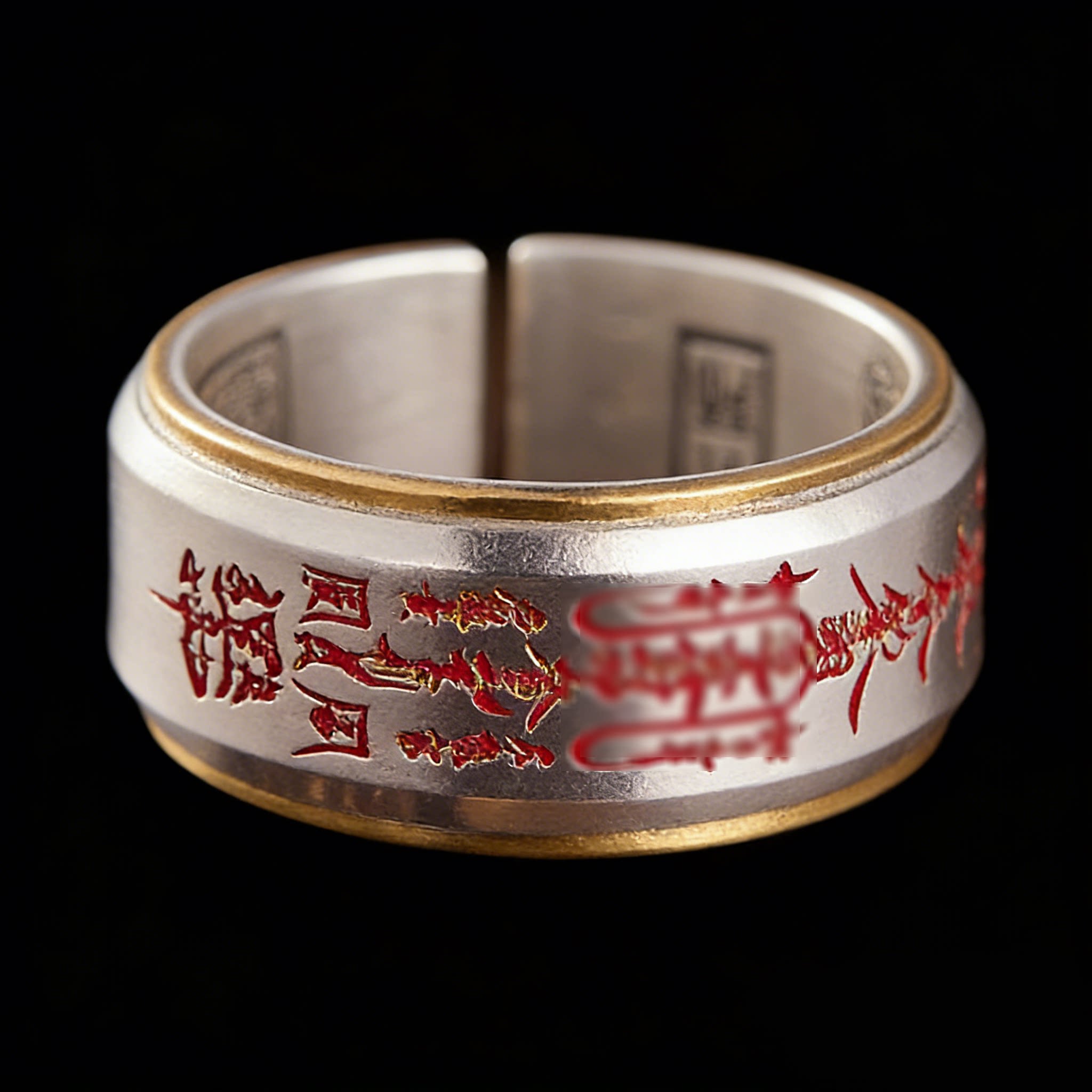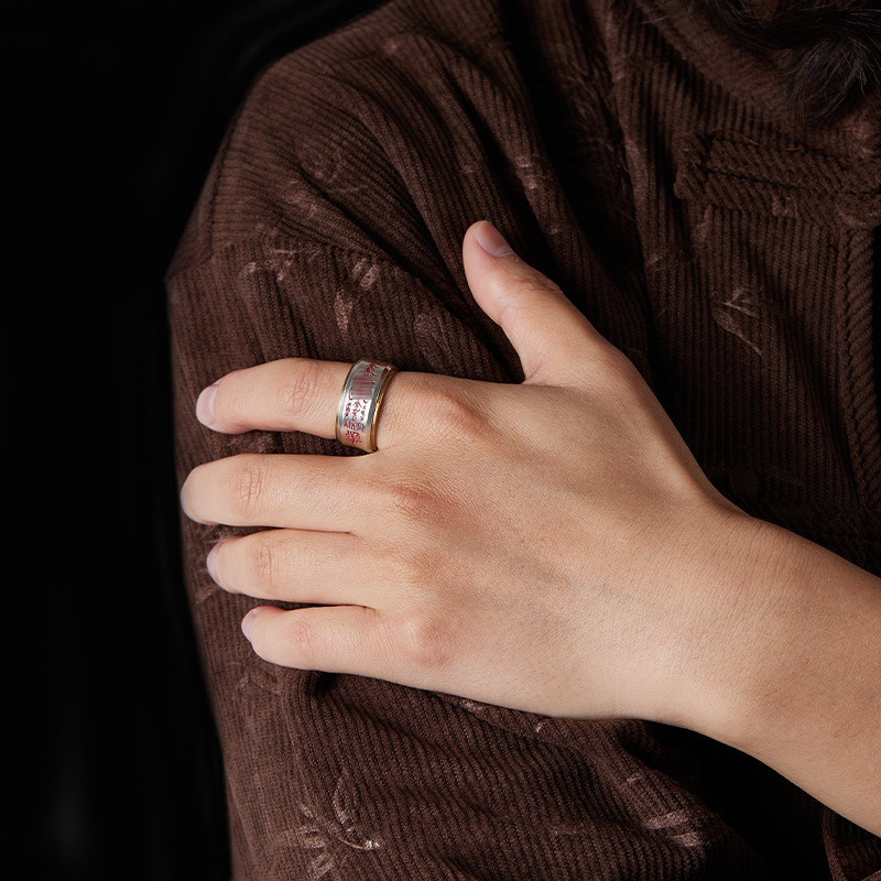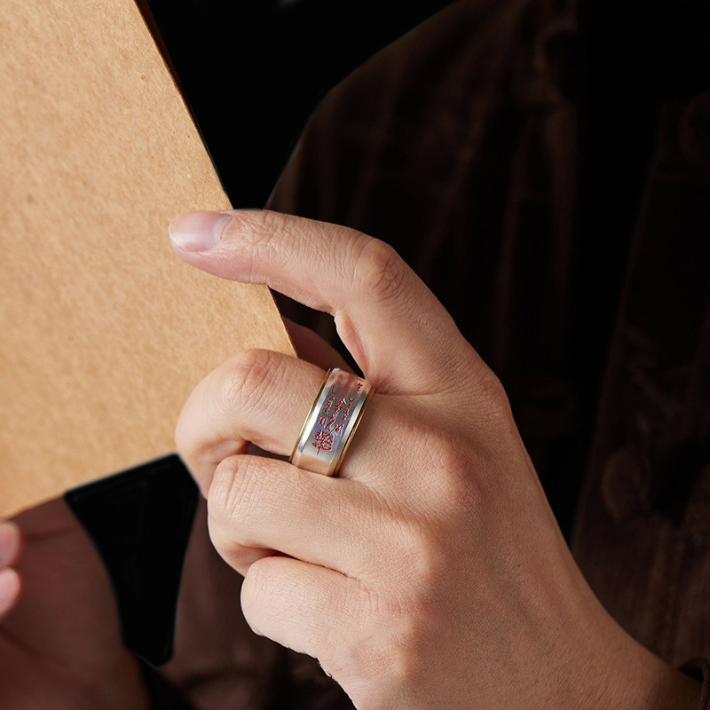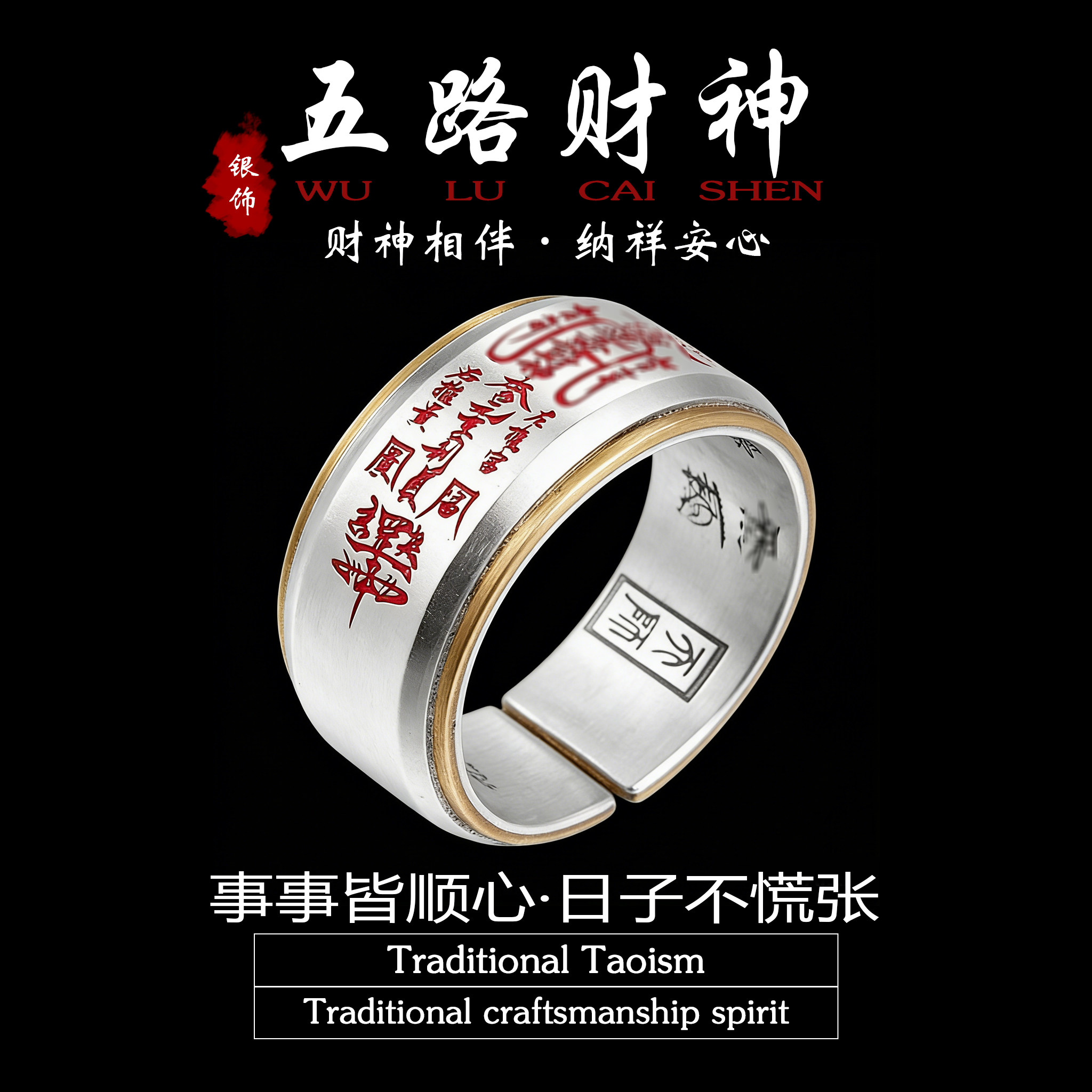 「道系」道家饰品五路财神招财戒指男士泰银朱砂平安宽指环法器