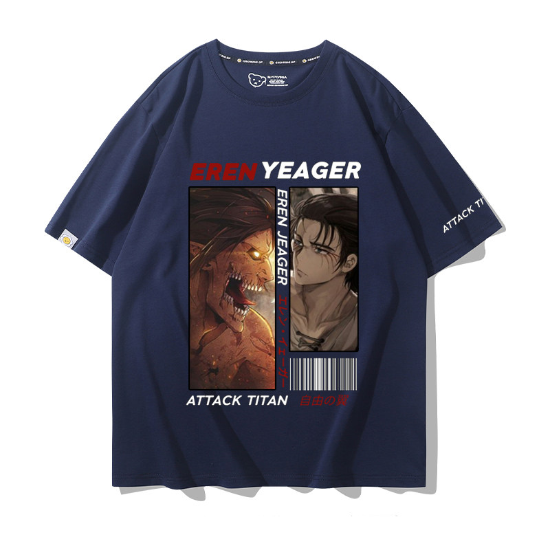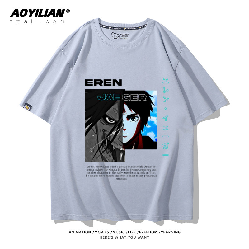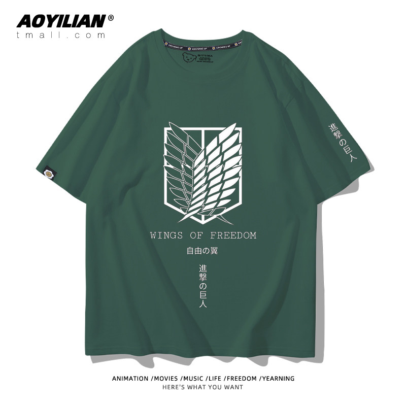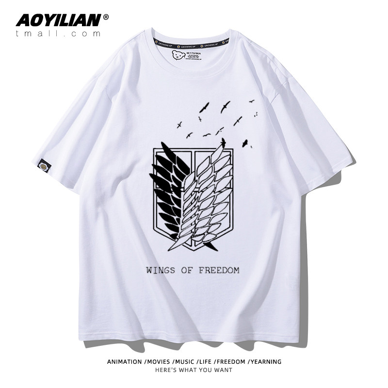 进击的巨人动漫利威尔艾伦自由之翼周边纯棉T恤男女短袖百搭宽松