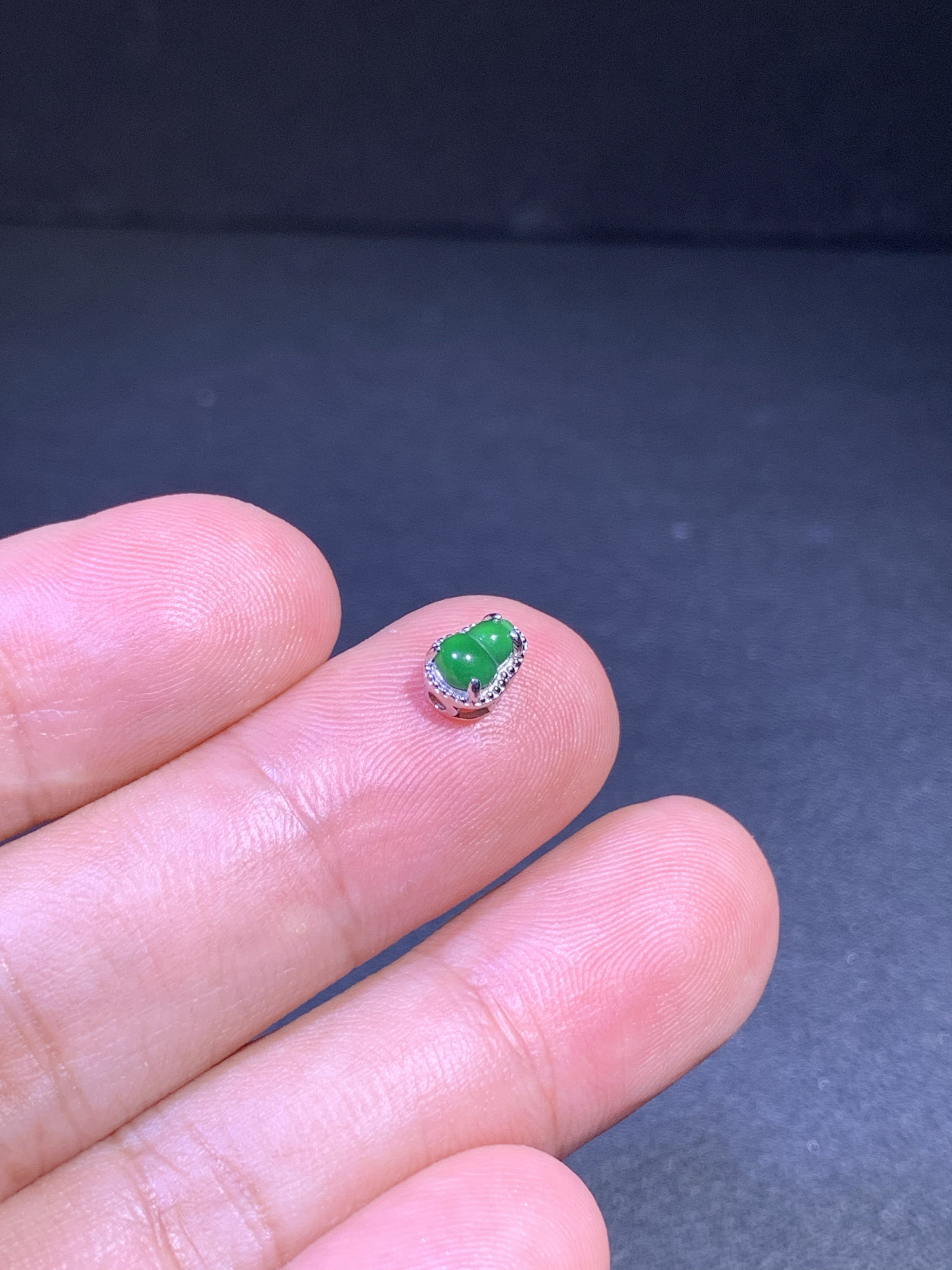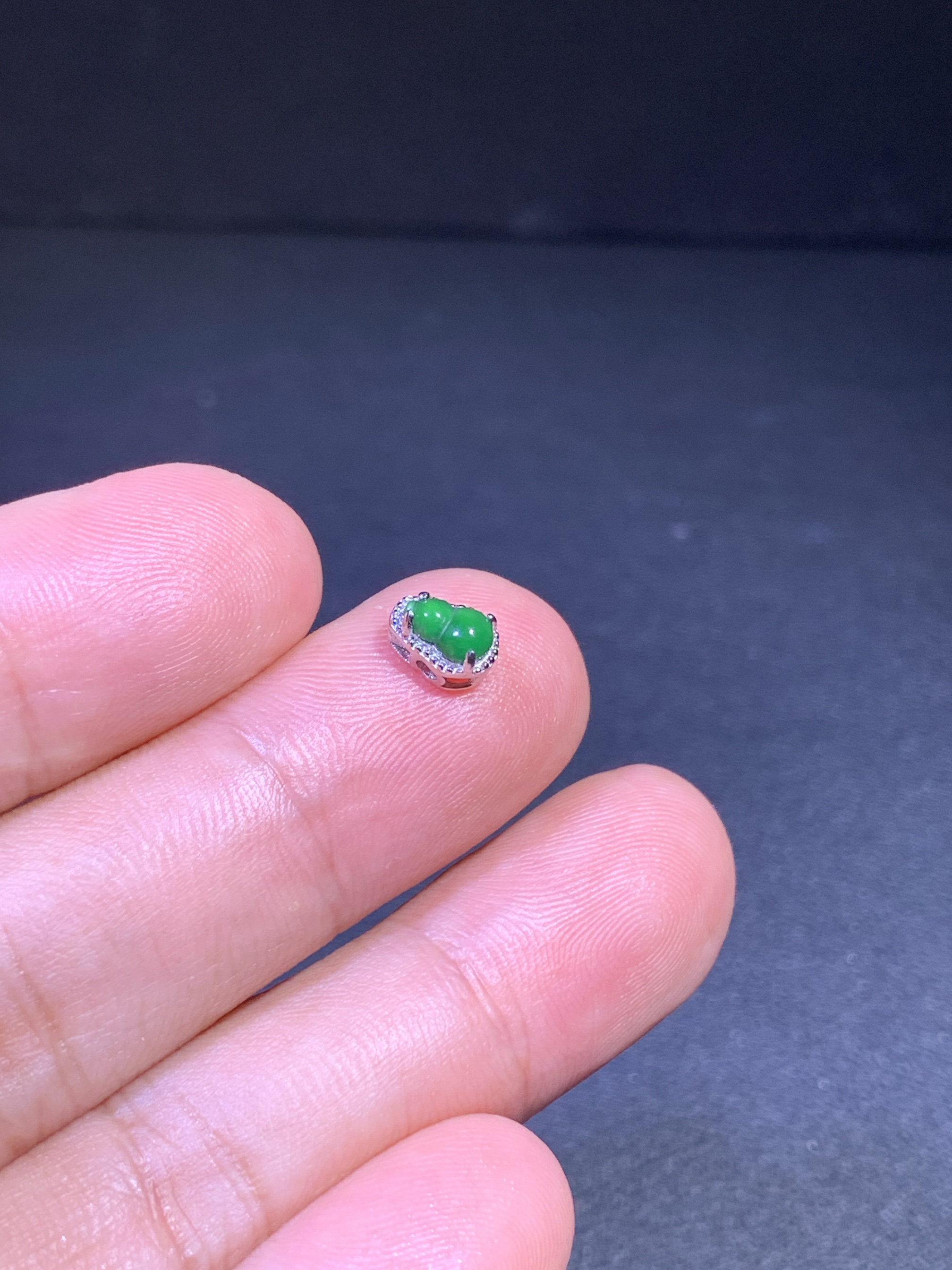 小精品天然A货翡翠冰种满阳绿葫芦D lY国标S925银镶嵌