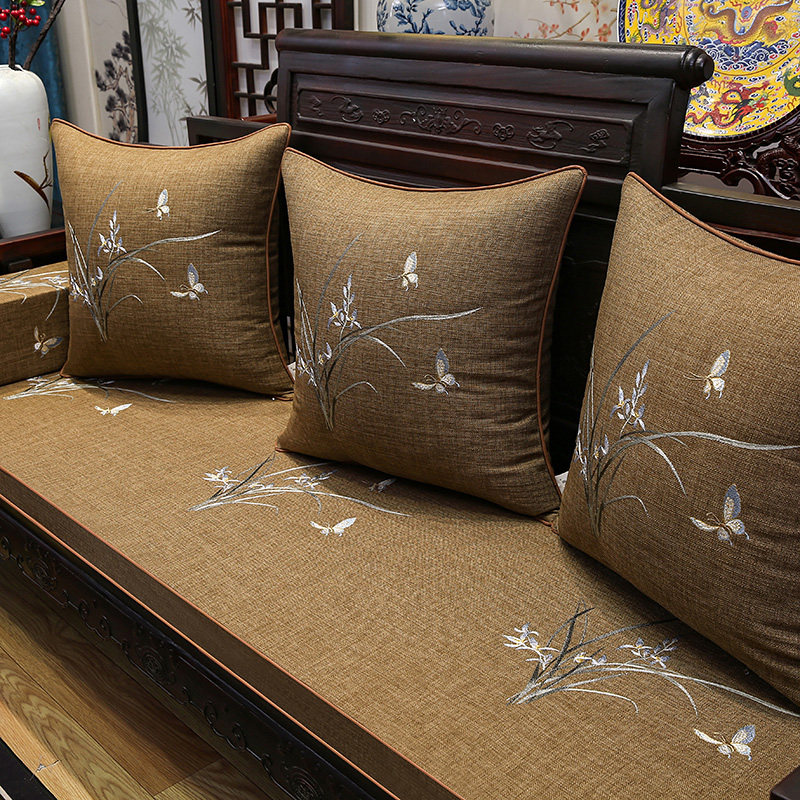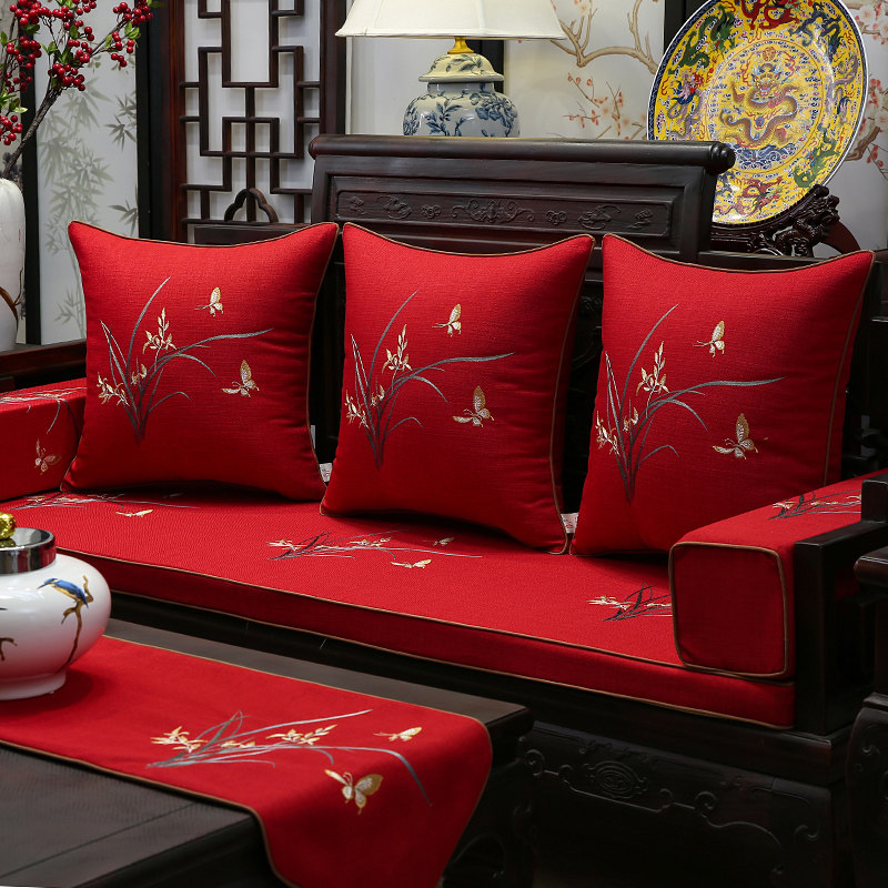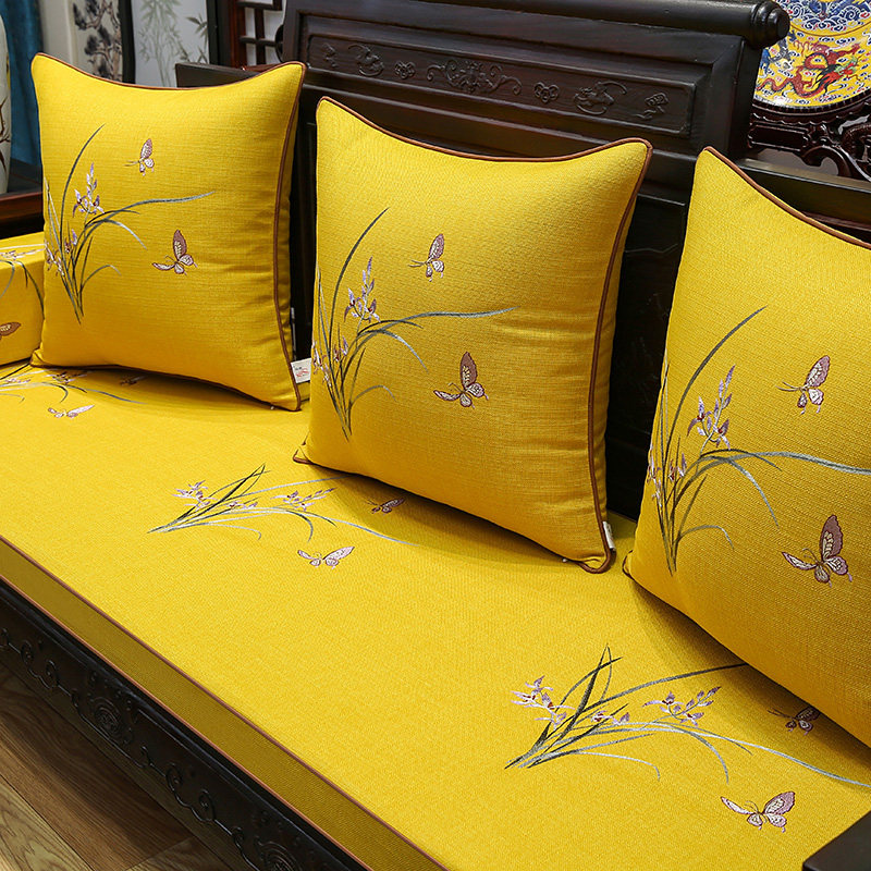 红木沙发坐垫五件套高档简约兰花刺绣罗汉床海棉垫客厅家用座垫