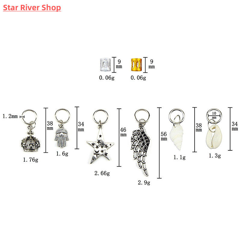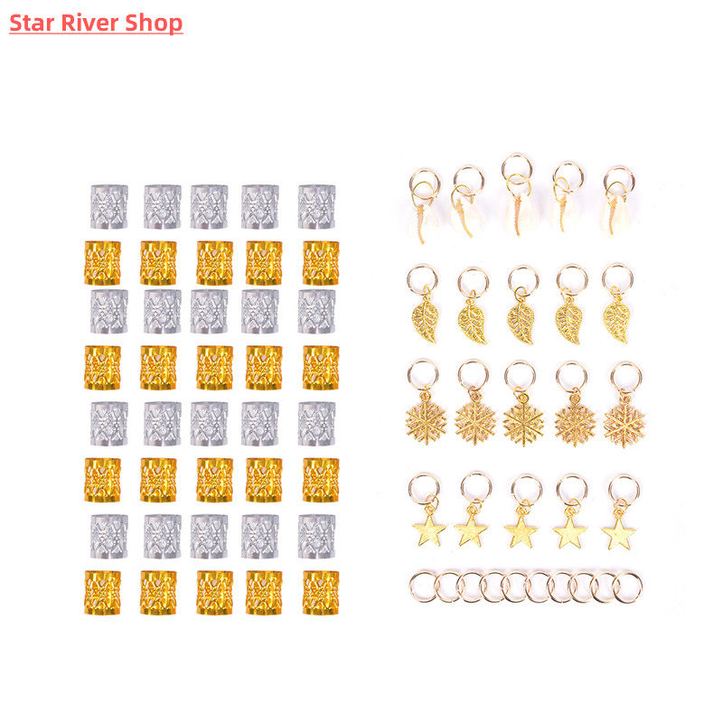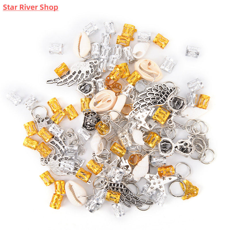 80/90/100pcs Metal African Hair Rings Beads Cuffs Tubes Char