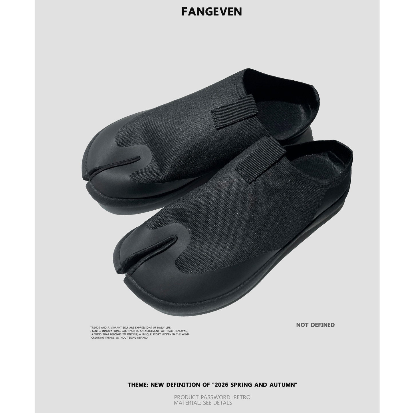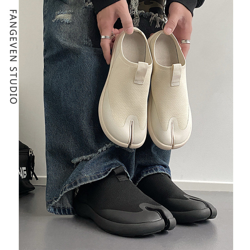 Fangeven复古马蹄鞋男情侣透气袜子鞋踩屎感软底飞织分趾鞋通勤鞋