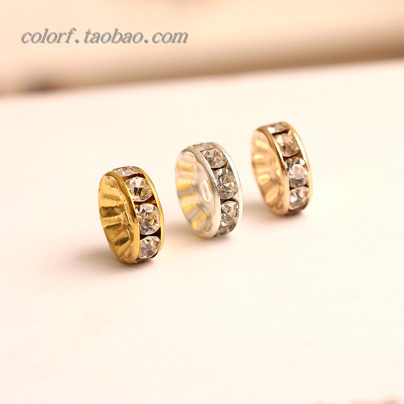 包邮100个 金色银色KC金水钻圈镶钻隔珠隔钻散珠 diy手工材料