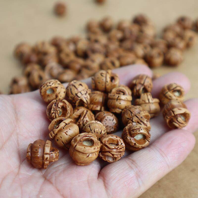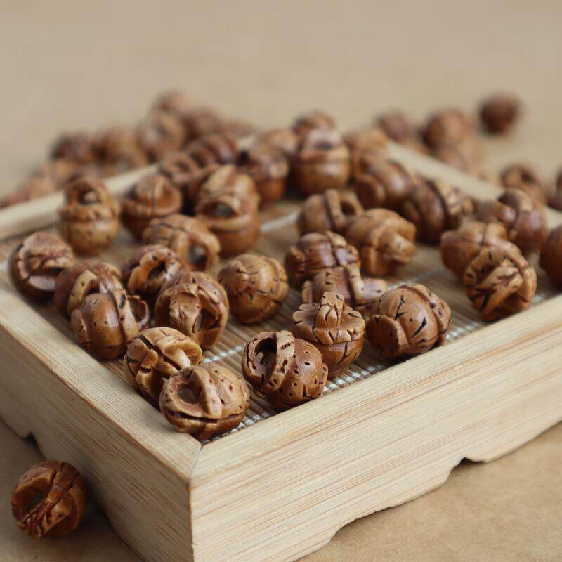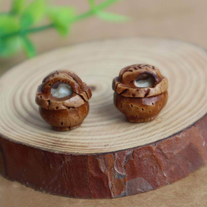 手工精雕刻桃核平口桃篮手工打磨DIY宝宝儿童别针手脚链饰品配件