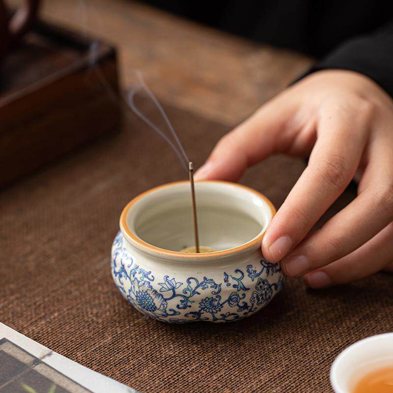 米黄汝窑可当香炉香托线香插香座檀香炉香熏炉家用室内茶具配件