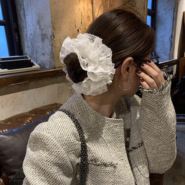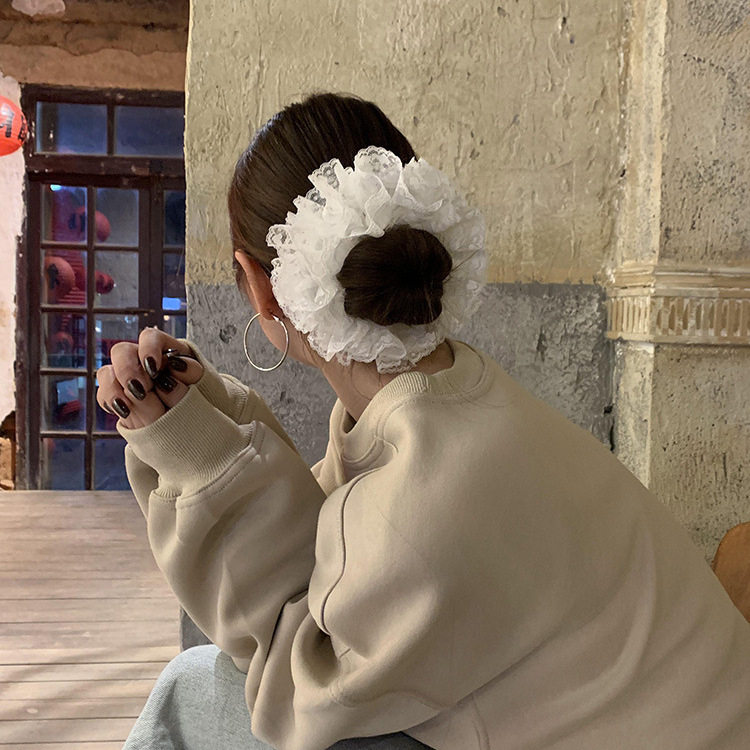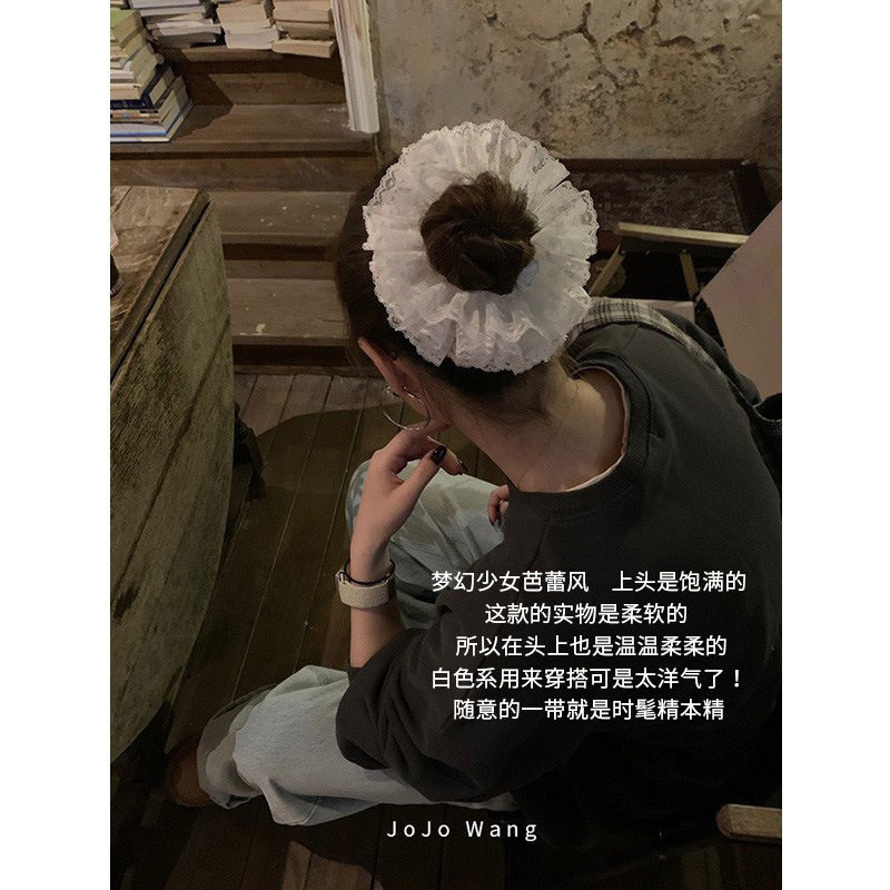 空中芭蕾~白系欧根纱蕾丝高级感大肠发圈女发绳发饰头绳韩国双层
